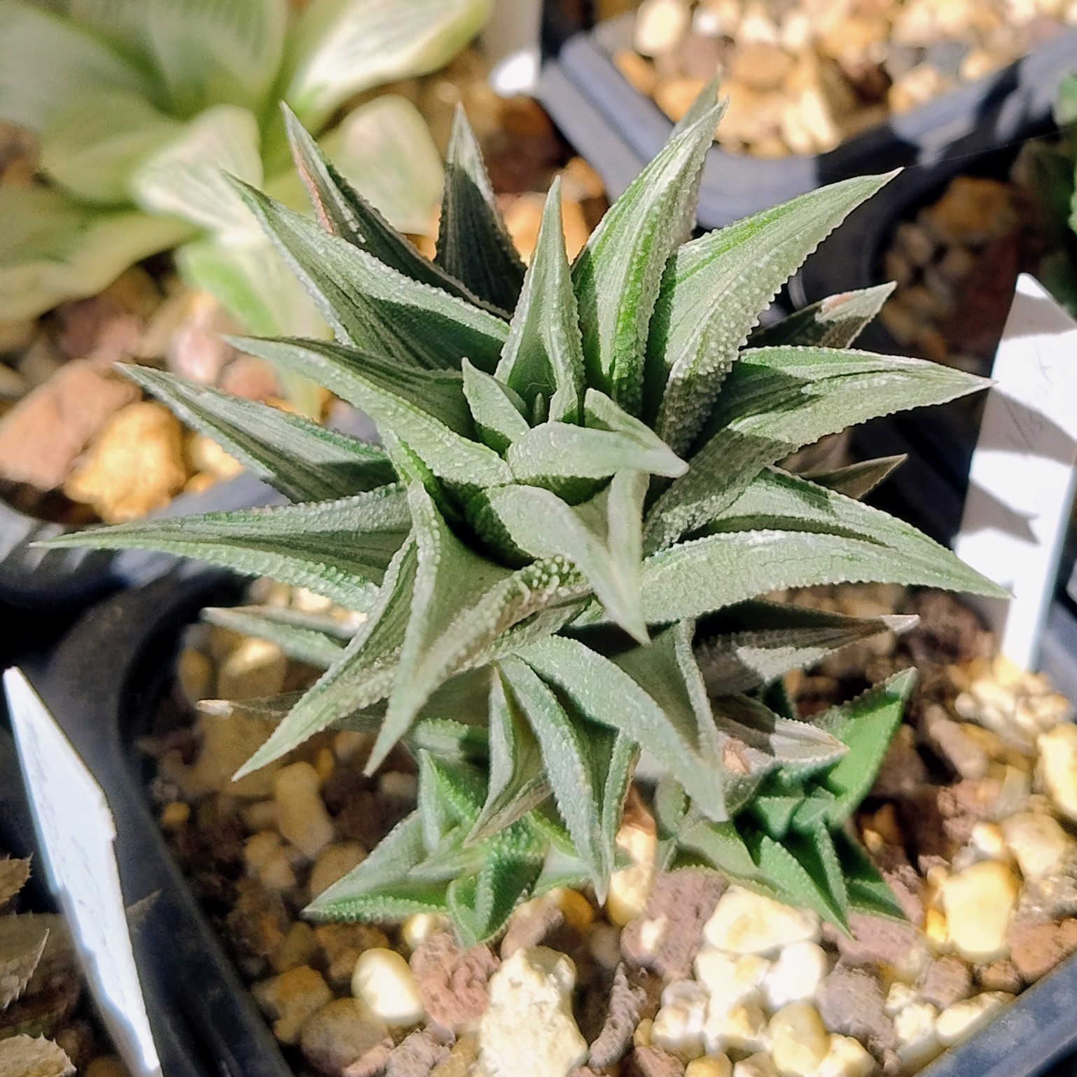 Como planta del día he elegido este Gymnocalycium spegazzinii, que si bien no florece aún, lo compensa con una bonita espinación.