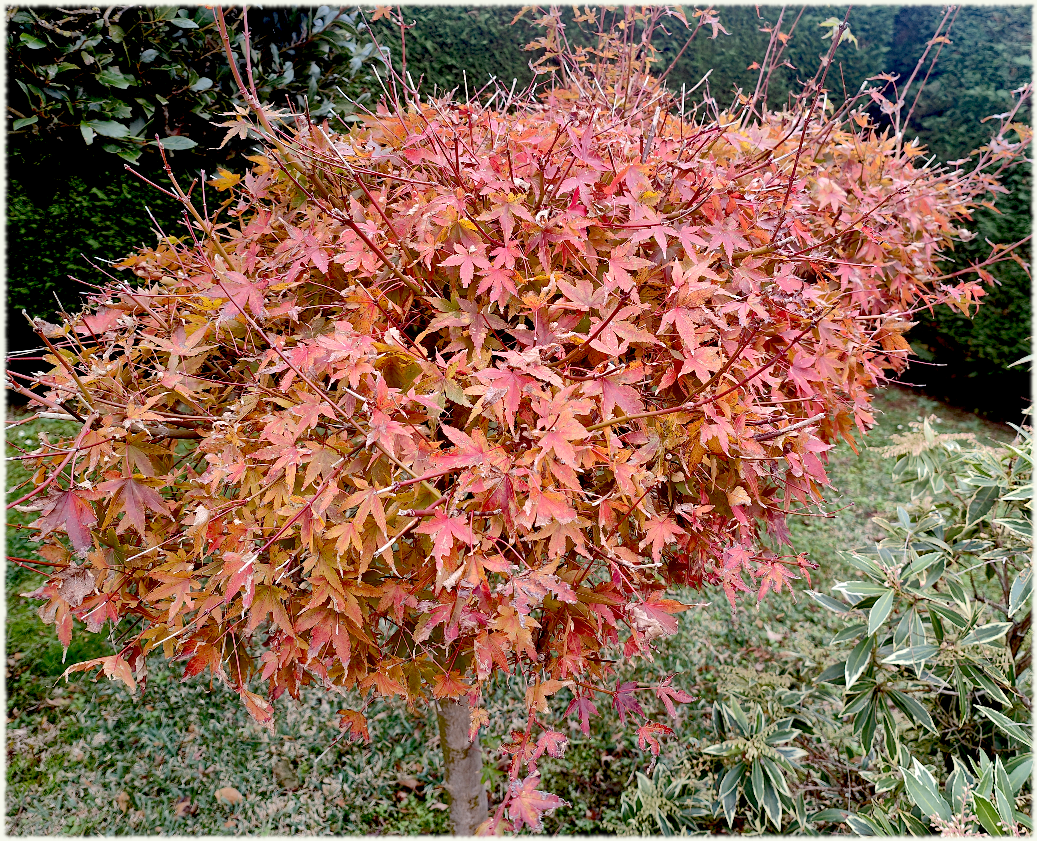 Quedan dos arces pequeñitos que en ésta época le dan color al jardín . Dentro de tres días se les caerán todas las hojas