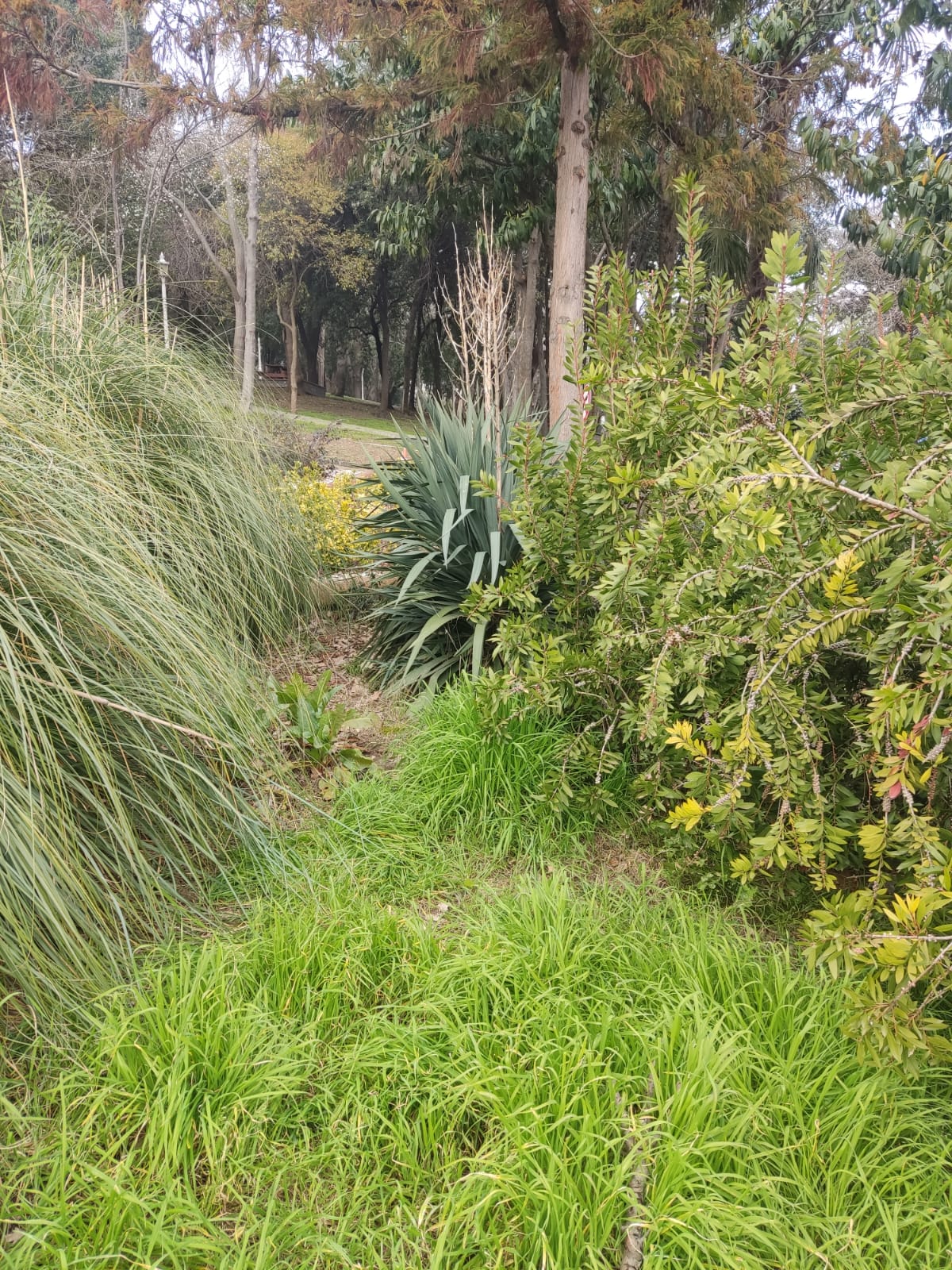 Me mandó al lugar mas lejano del parque, que yo había estado cerca, pero bueno me insistió que estaba ahi la planta, y me indicó como llegar, sube por ese camino y luego a la derecha encontrarás un restaurante y blablabla y ya estoy saliendo para el camino y miro para la derecha y NOOOOO pero si está aquí !!!!! justo al lado del edificio de dirección del parque. Y llamo a la jefa para que venga a ver la planta y me dice: "eso es una yucca, pensaba que querías ver un phormium por eso te mandé arriba" bueno con la foto de la mia ella pensó que era un phormium, es verdad que aunque sea la madre no se parece por ahora mucho...... Da igual ya la tengo: