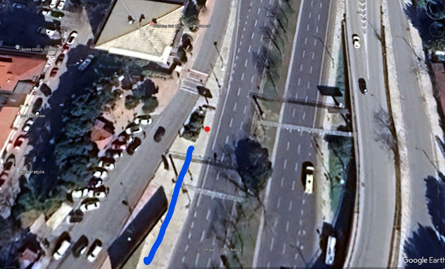 Yo iba mirando al suelo por toda la linea azul, y es esa cosa rectangular donde puse el punto rojo, es por lo menos tan grande como 4 coches uno al lado del otro.