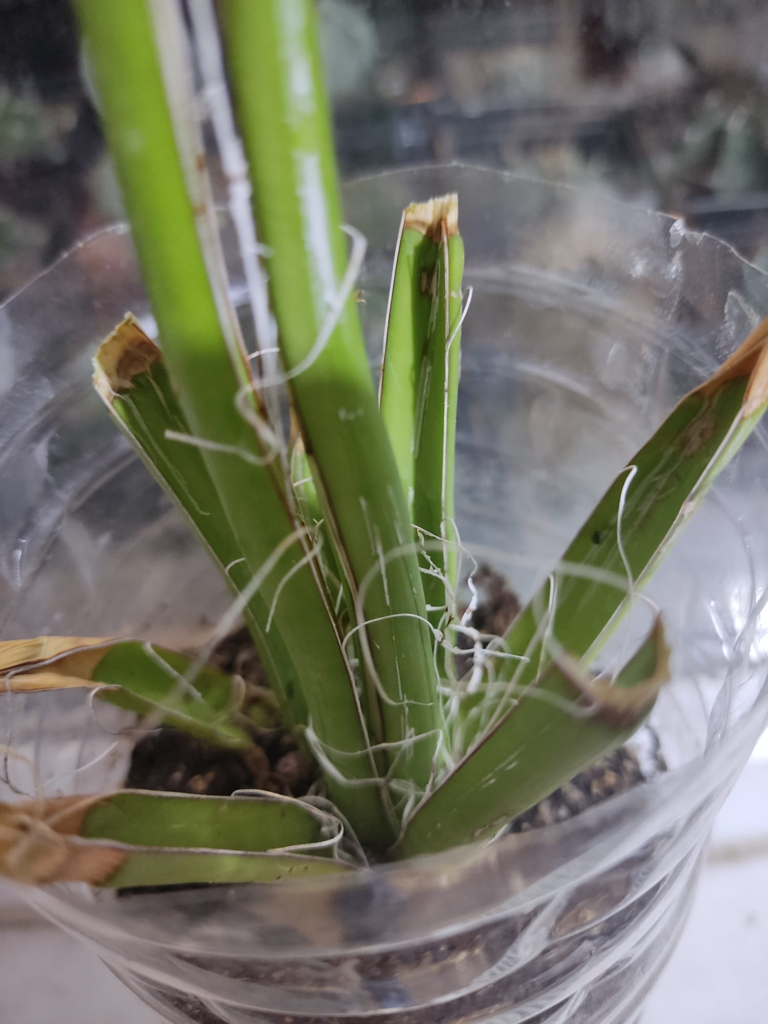 La planta tenía poquisima turgencia recién transplantada con raices cortadas machacado golpeado en el viaje.