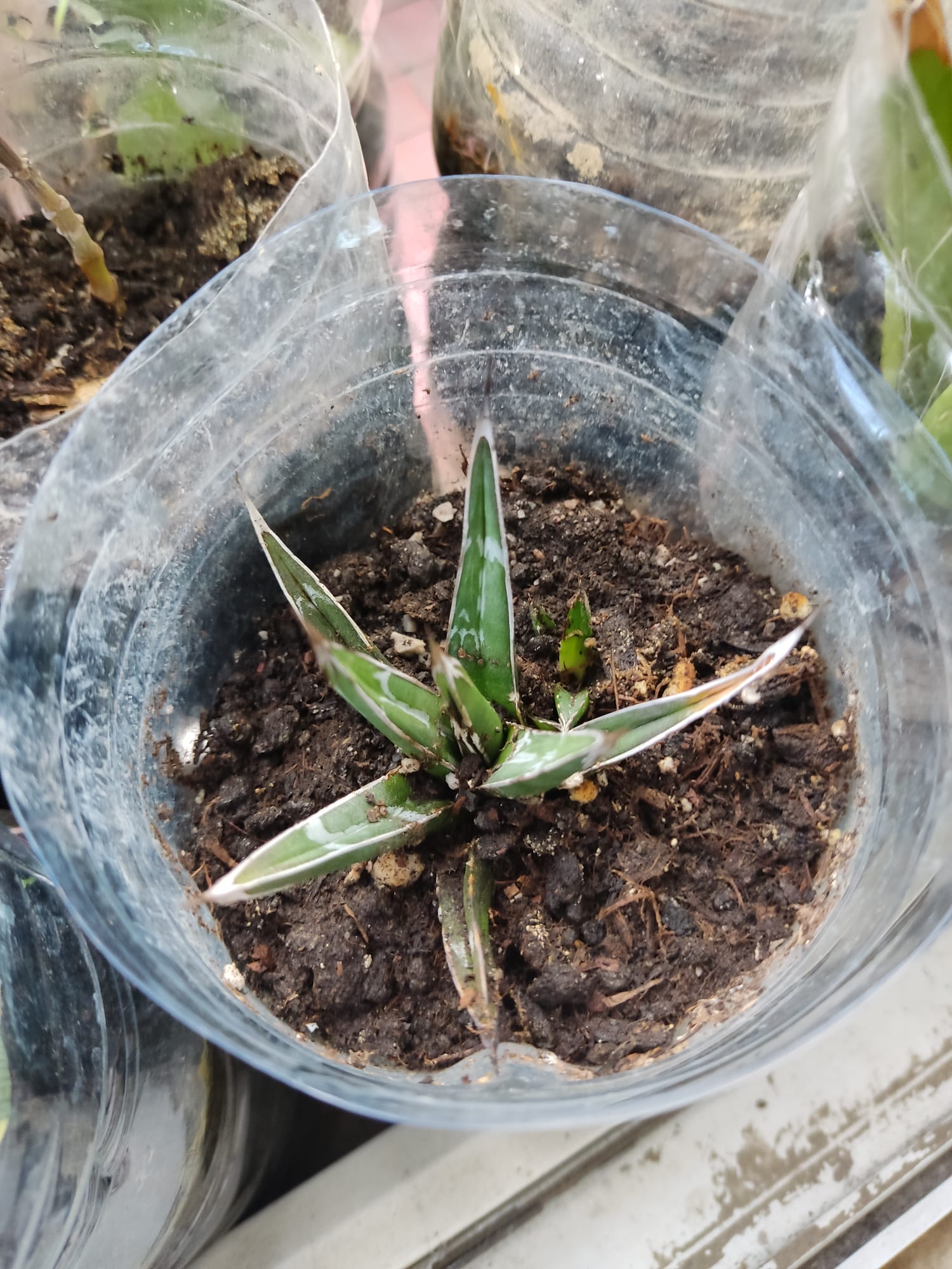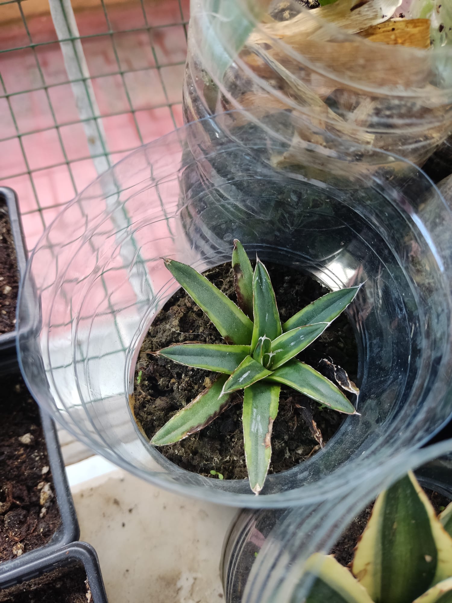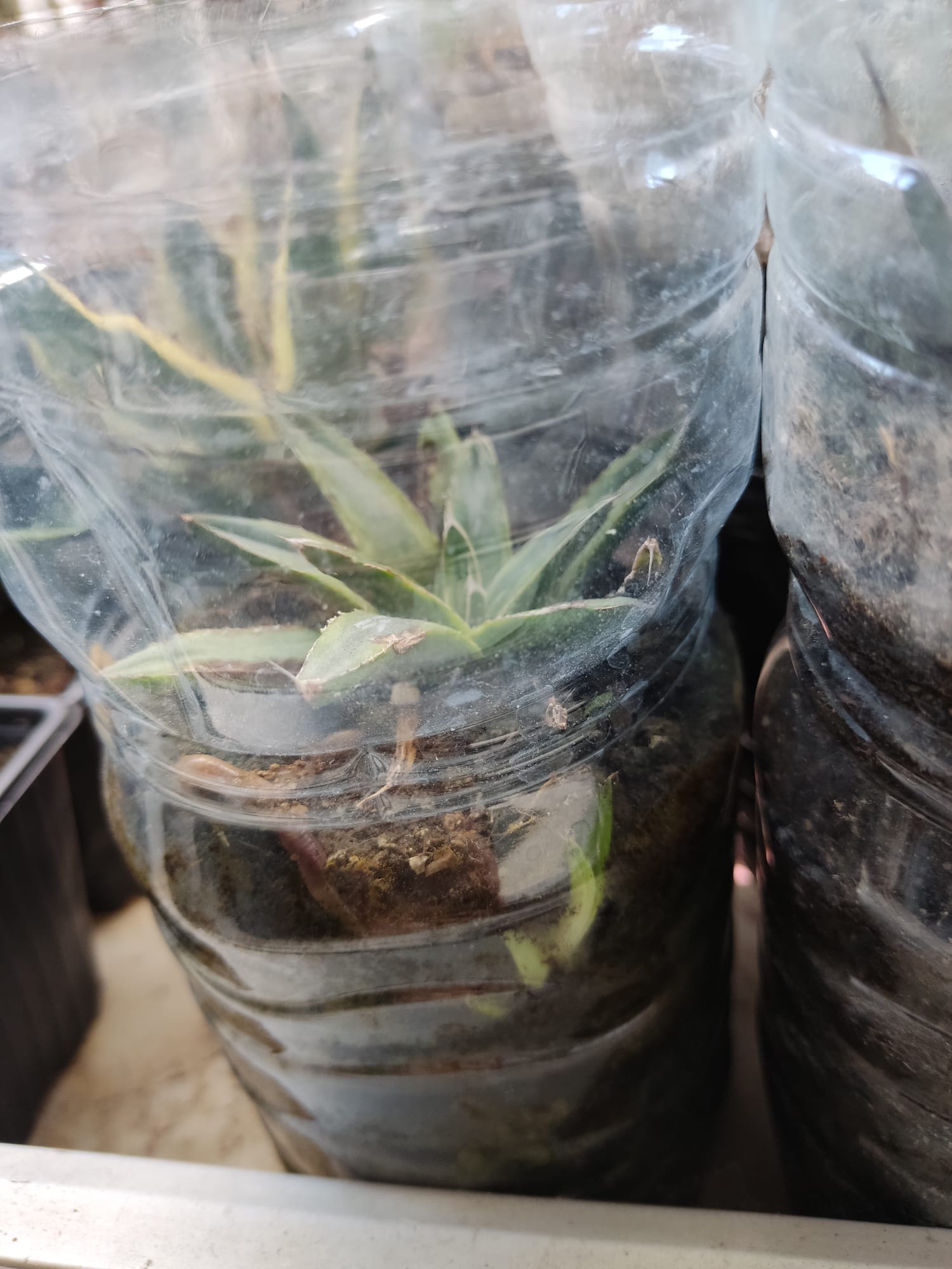 Principalmente le quería poner a estas plantas, la primera el agave victoria reginae raro y la segunda es una adelfa que está fatal de la variegada que es super dificil de conseguir y de mantener.