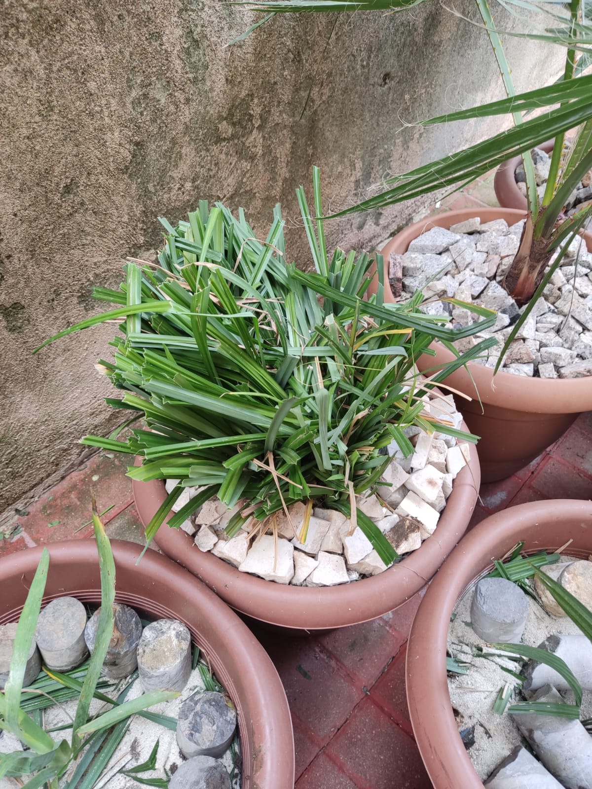 Aunque en parte me pienso que esta planta puede ser de las tipicas que ocupa toda la superficie es decir quizás tenga que retirar piedras para dejar que crezcan mas brotes y eventualmente quitarle todas las piedras y que solo haya planta en la maceta. No se....