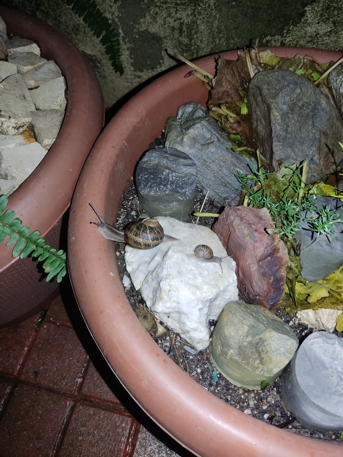 Los caracoles mordiendo la basura orgánica.