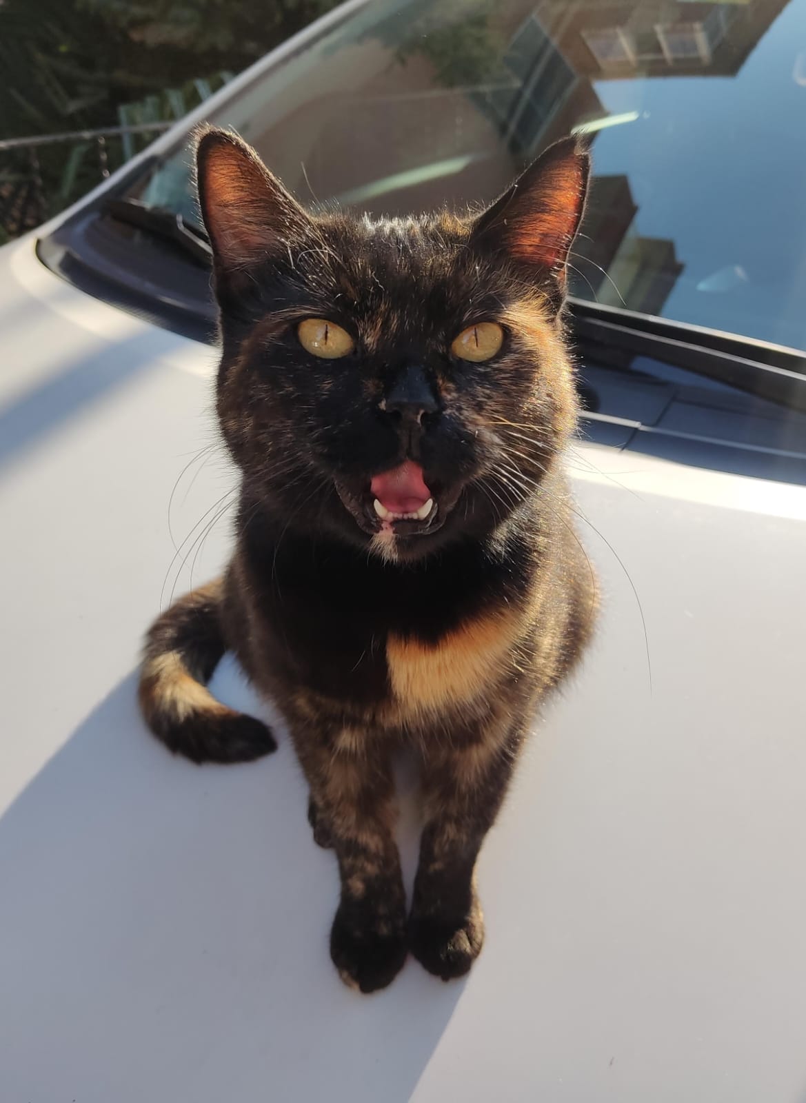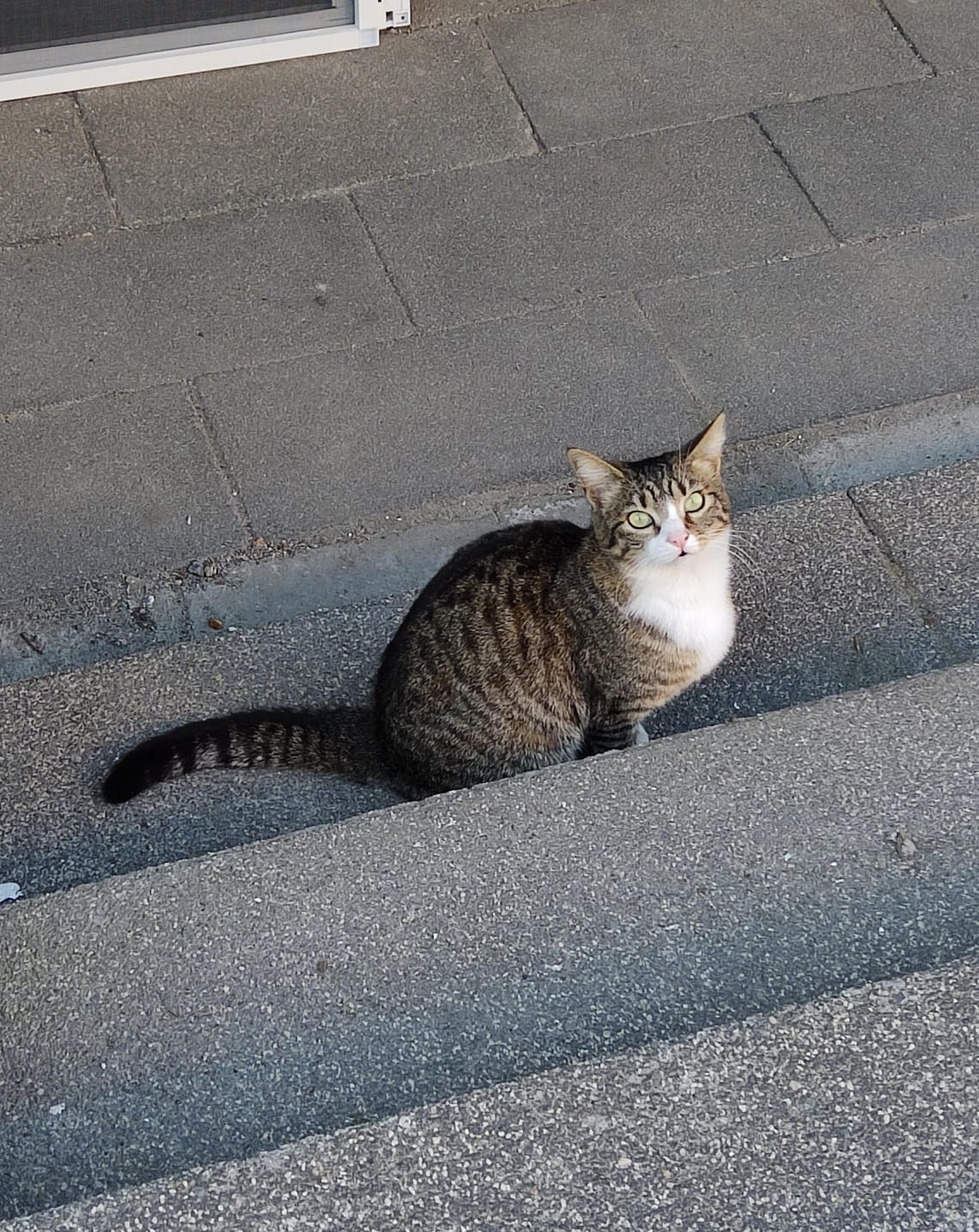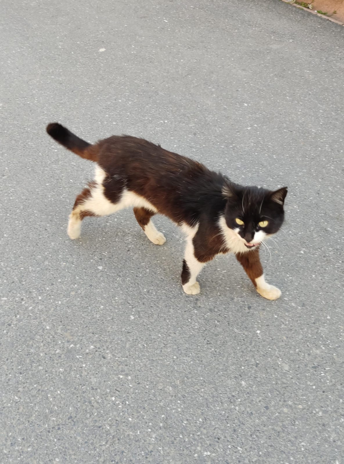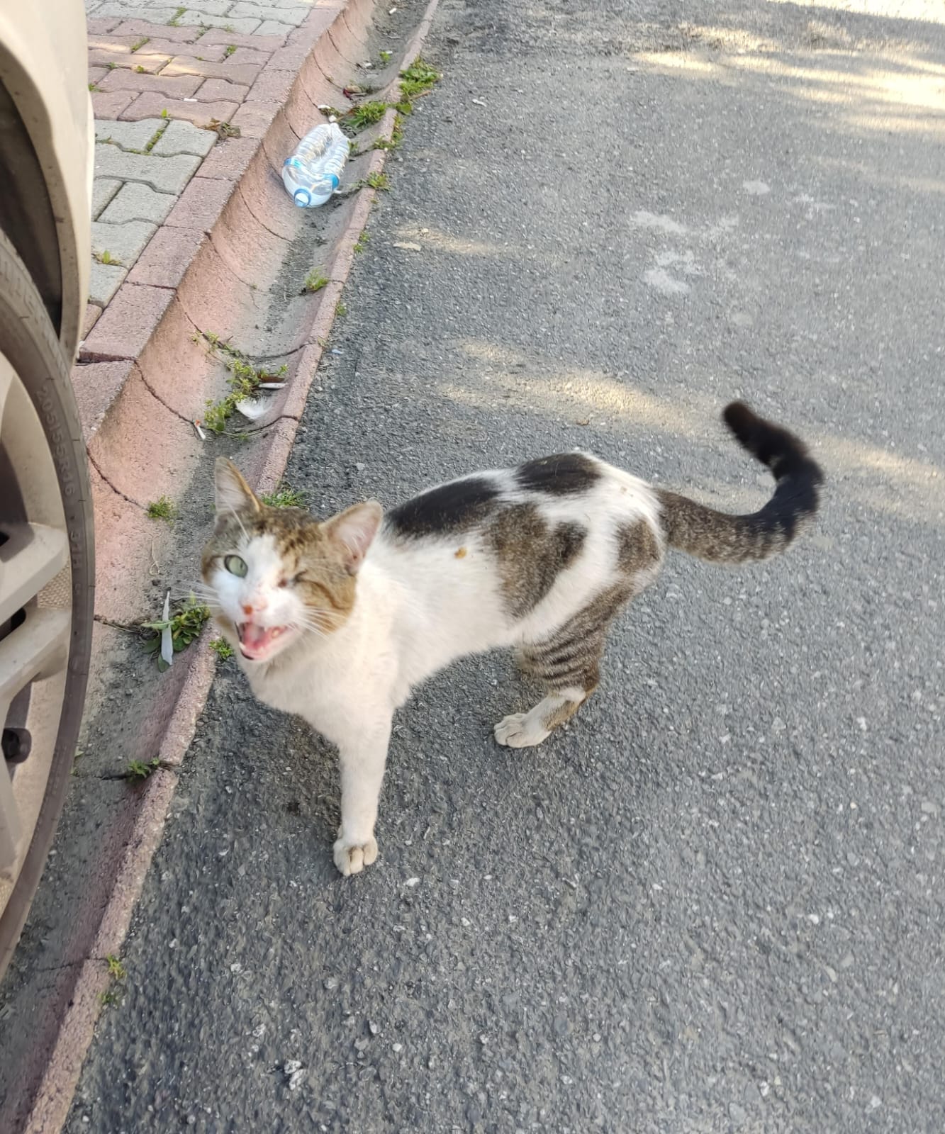 En el mismo lugar donde estaba este gato que le faltaba un ojo vi a esta gata