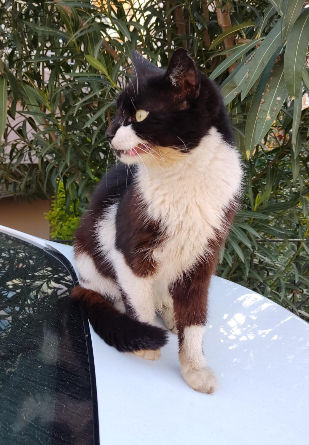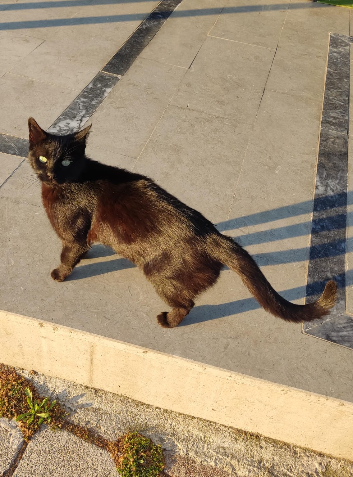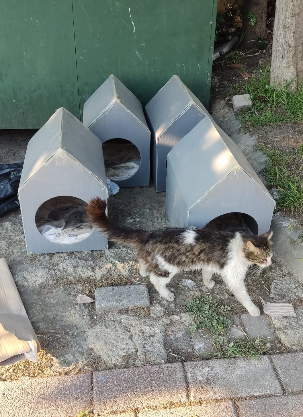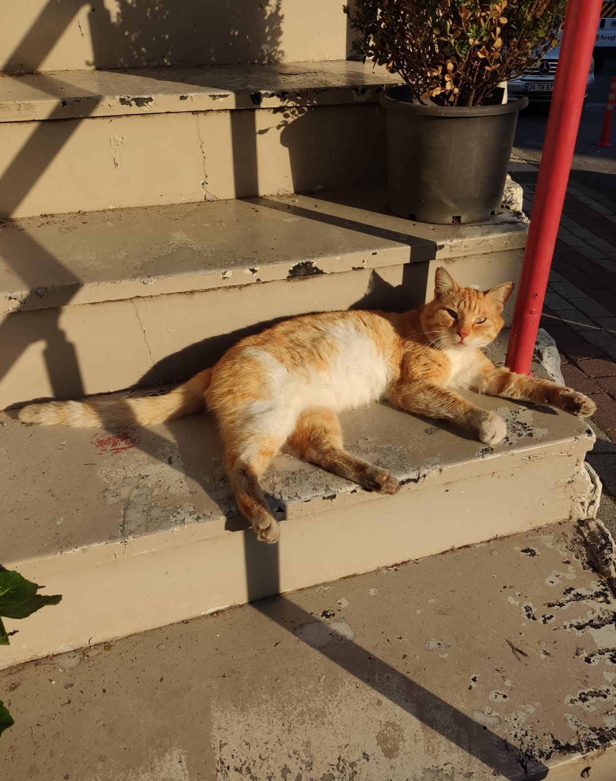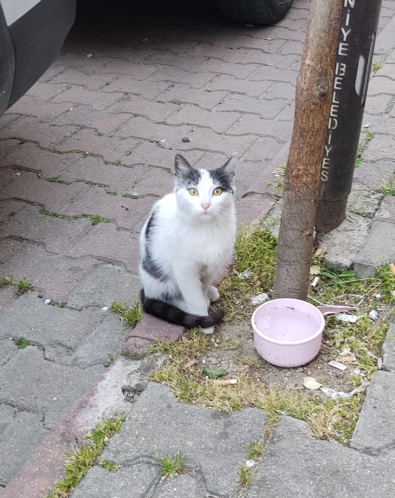 En el mismo lugar donde estaba este gato que le faltaba un ojo vi a esta gata
