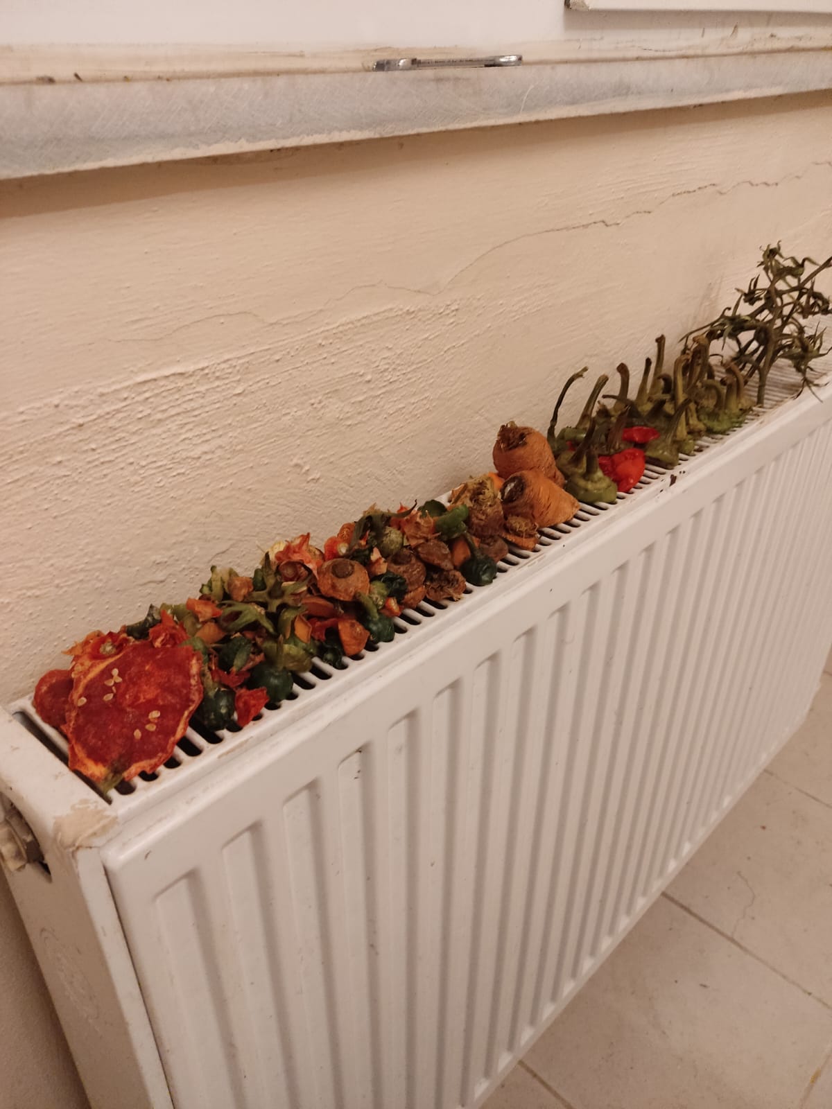 Decidí poner las zurraspillas con unos trapos ahi para ver si las puedo guardar sin ejecutar. Salvo las uvas que se ven, parece que todo se ha ido secando rápido.