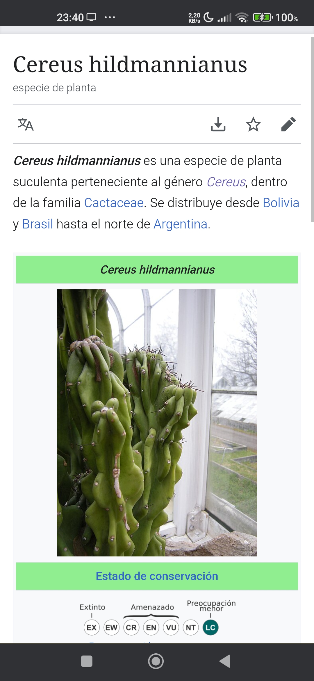 ésto es aquello de mi muñeca lo entiende pero yo no? te refieres a la sección?Jesus escribió: Mié Mar 19, 2025 9:47 am En cuanto a que sea algún Cereus es algo totalmente descartado, la forma de las costillas es inversa, si te fijas el Echinopsis pachanoi es un polígono algo redondeado y los Cereus son una estrella algo redondeada. Es un carácter fijo, no cambia desde que la planta tiene pocos centímetros hasta adulta.
