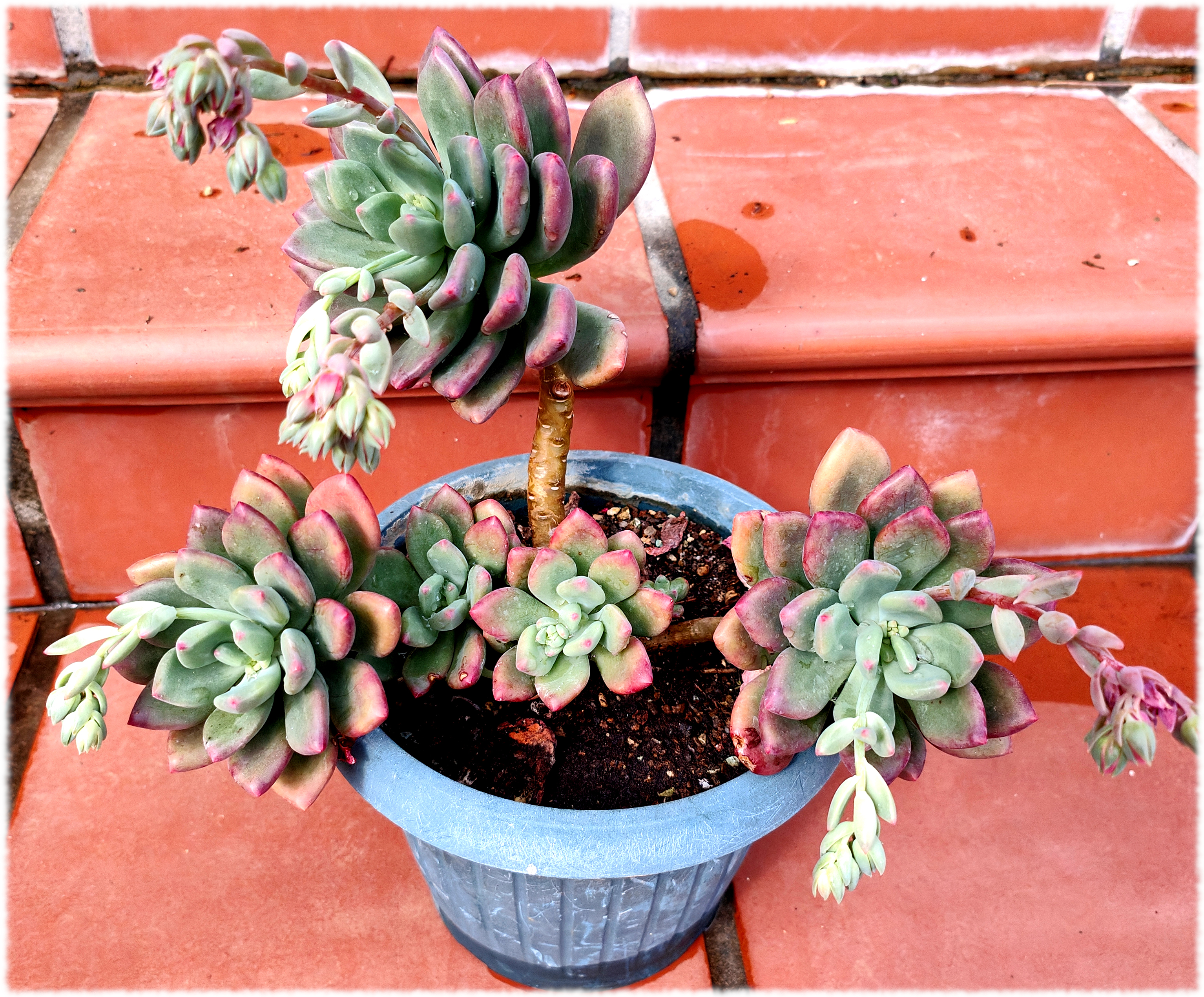 Esta planta proviene de un usuario francés ( Thomas) del antiguo foro de ICN que también lo seguía en Flickr y es una planta que nació en su casa probablemente un cruce entre Graptopetalum paraguayense y alguna Echeveria.