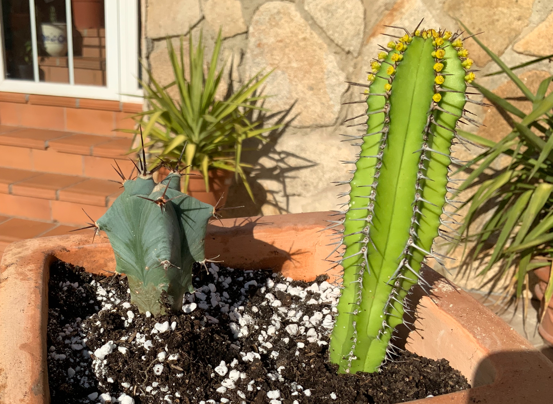 Echinocactus platyacanthus el de la izquierda y Euphorbia fruticosa la de la derecha.