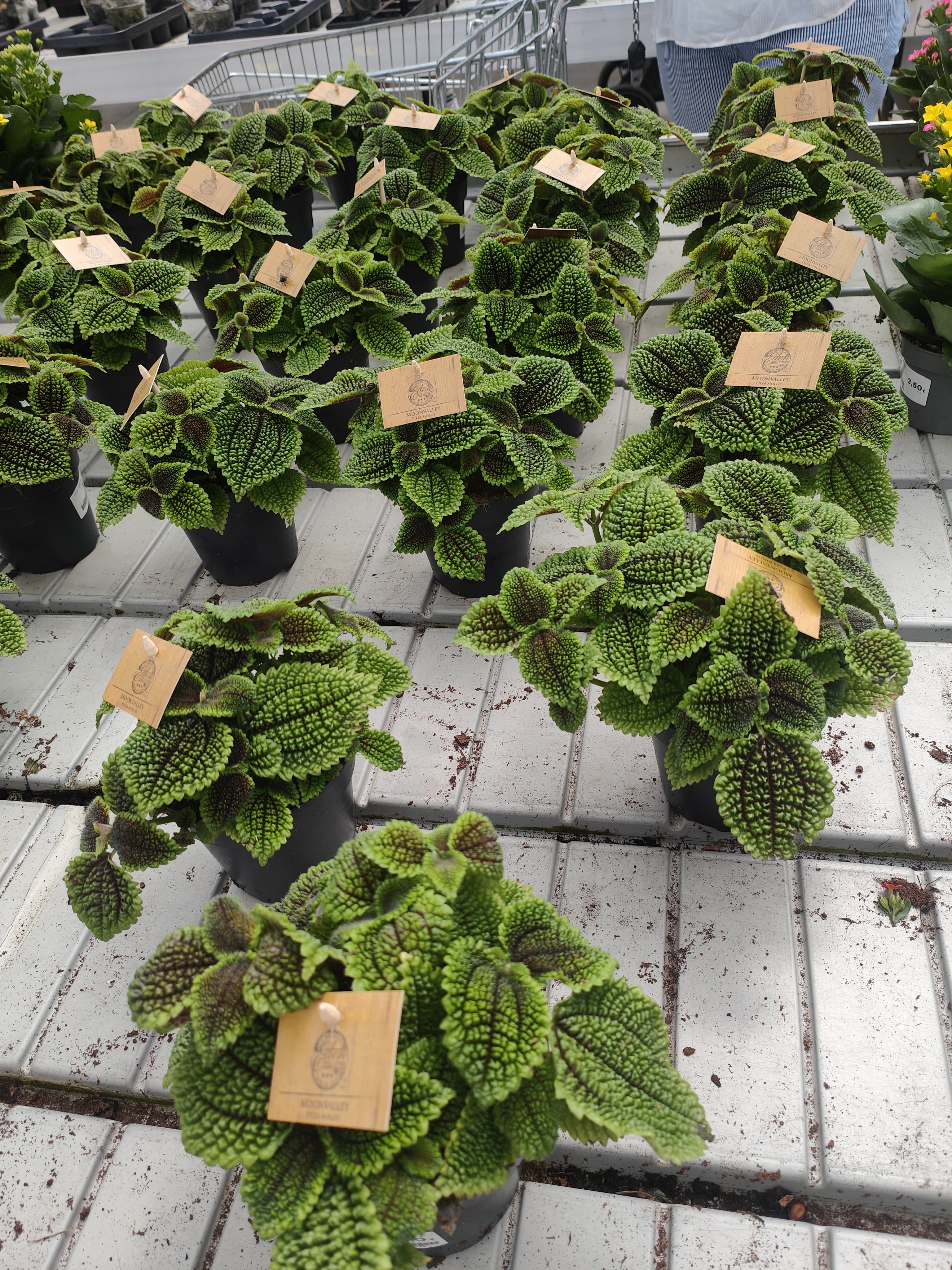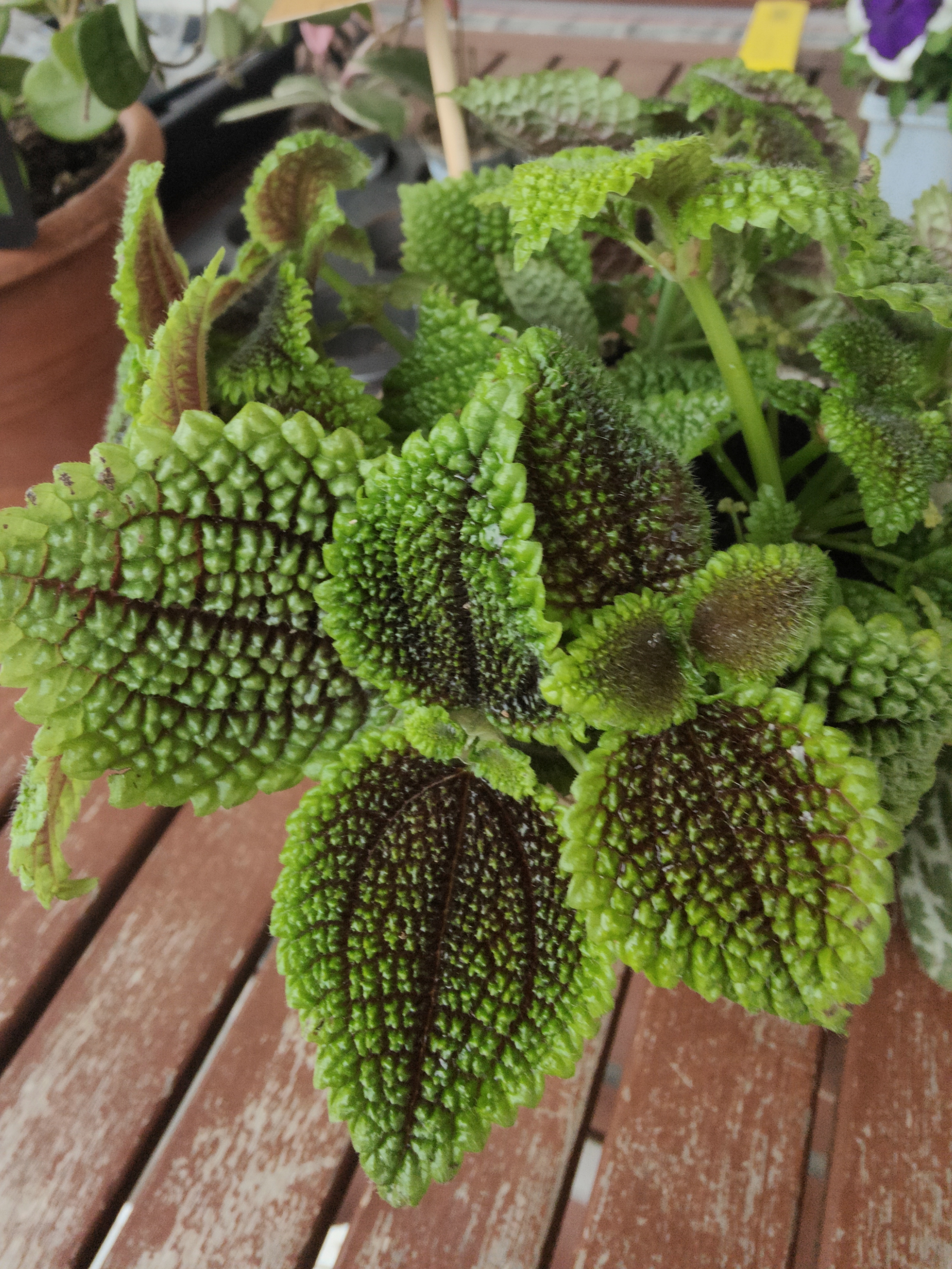 Compré plantas normales para los balcones, petunias y surfinias. También compré una begonia tuberosa color butano. Y mi hija compró esta Pilea que nunca antes había visto y me pareció espectacular.
