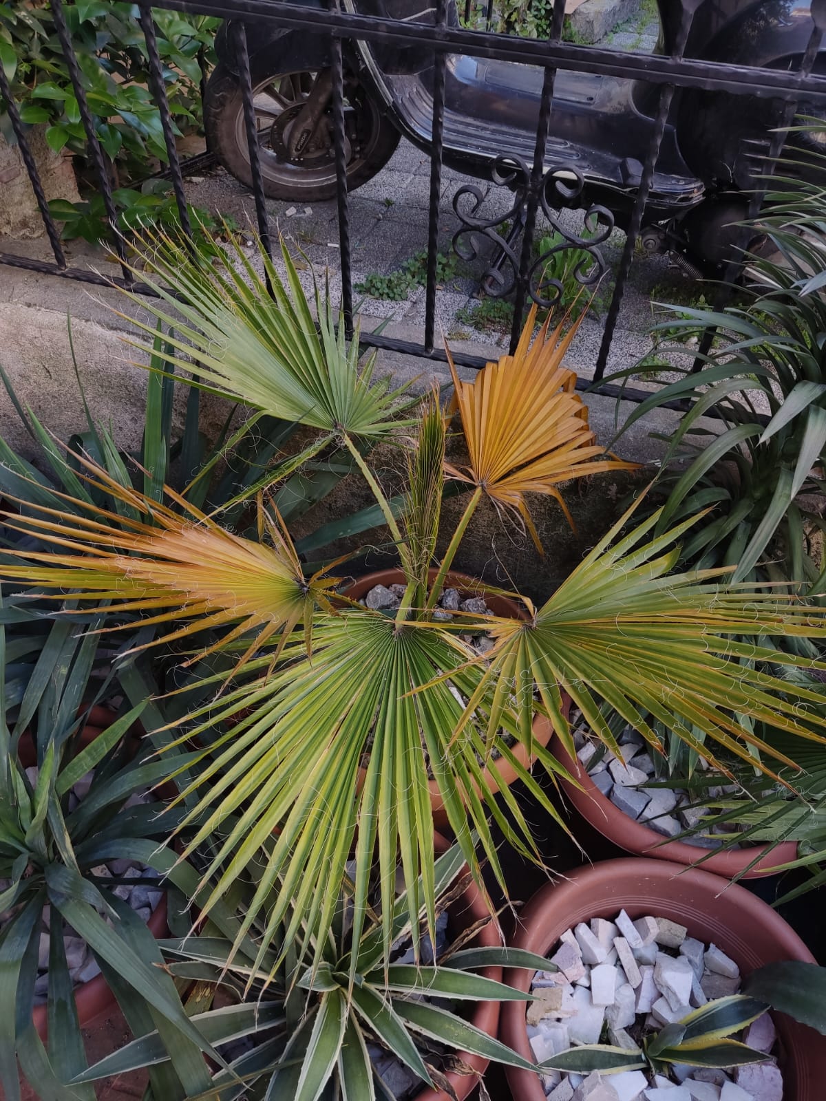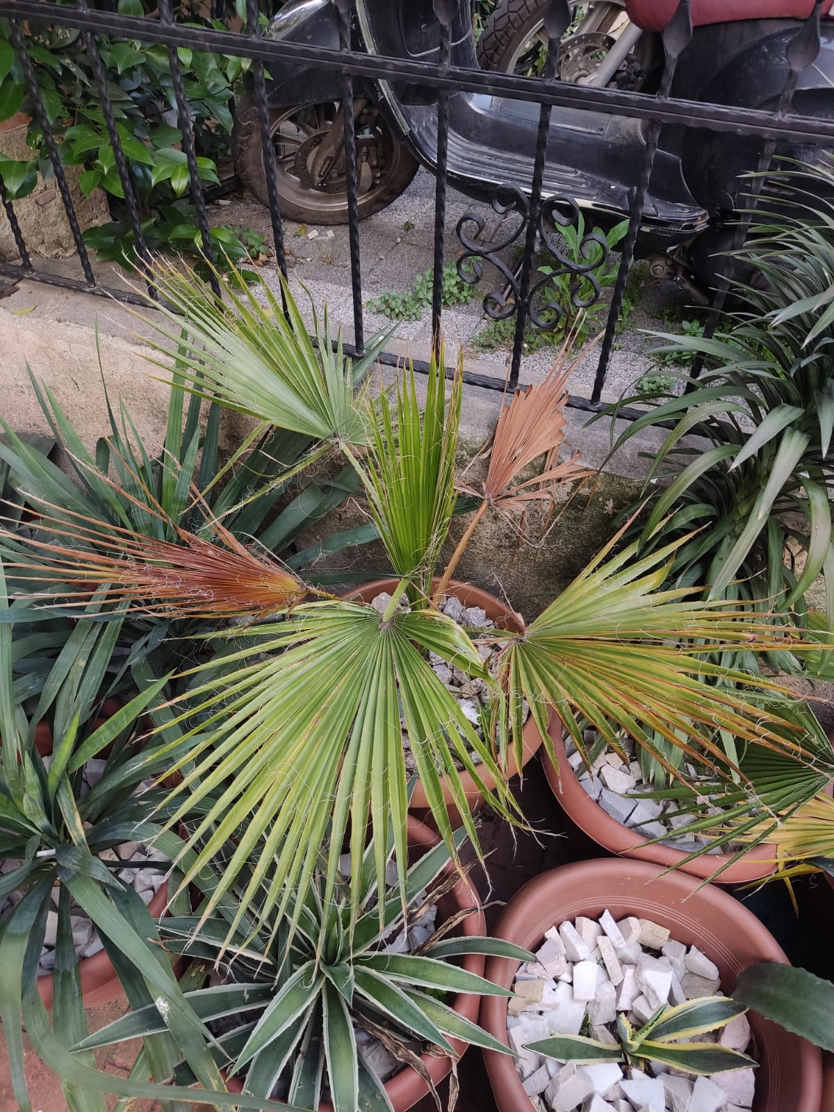 Esto bueno, fallo mio que con tantas ocupaciones pues me descuidé de regar un poco las plantas pero estaban todas bien menos esta palmera que se quemó/ secó un poco