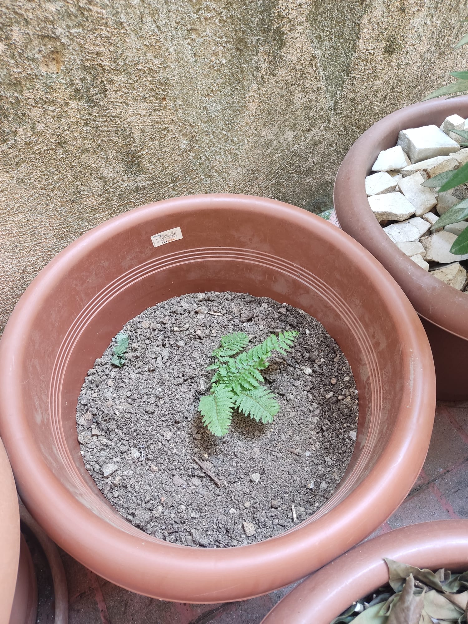 Y planté el malito o muerto no se, justo al lado de este el grande.... le puse las piedras