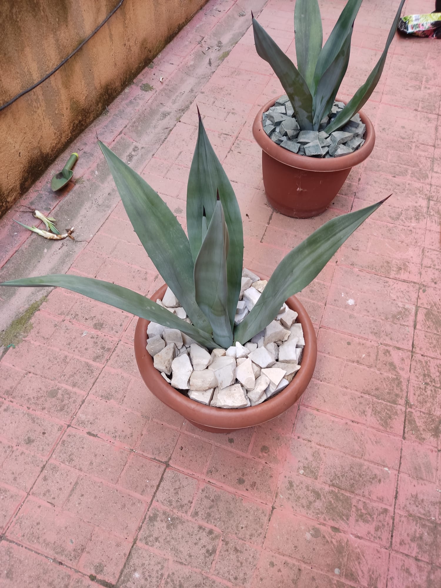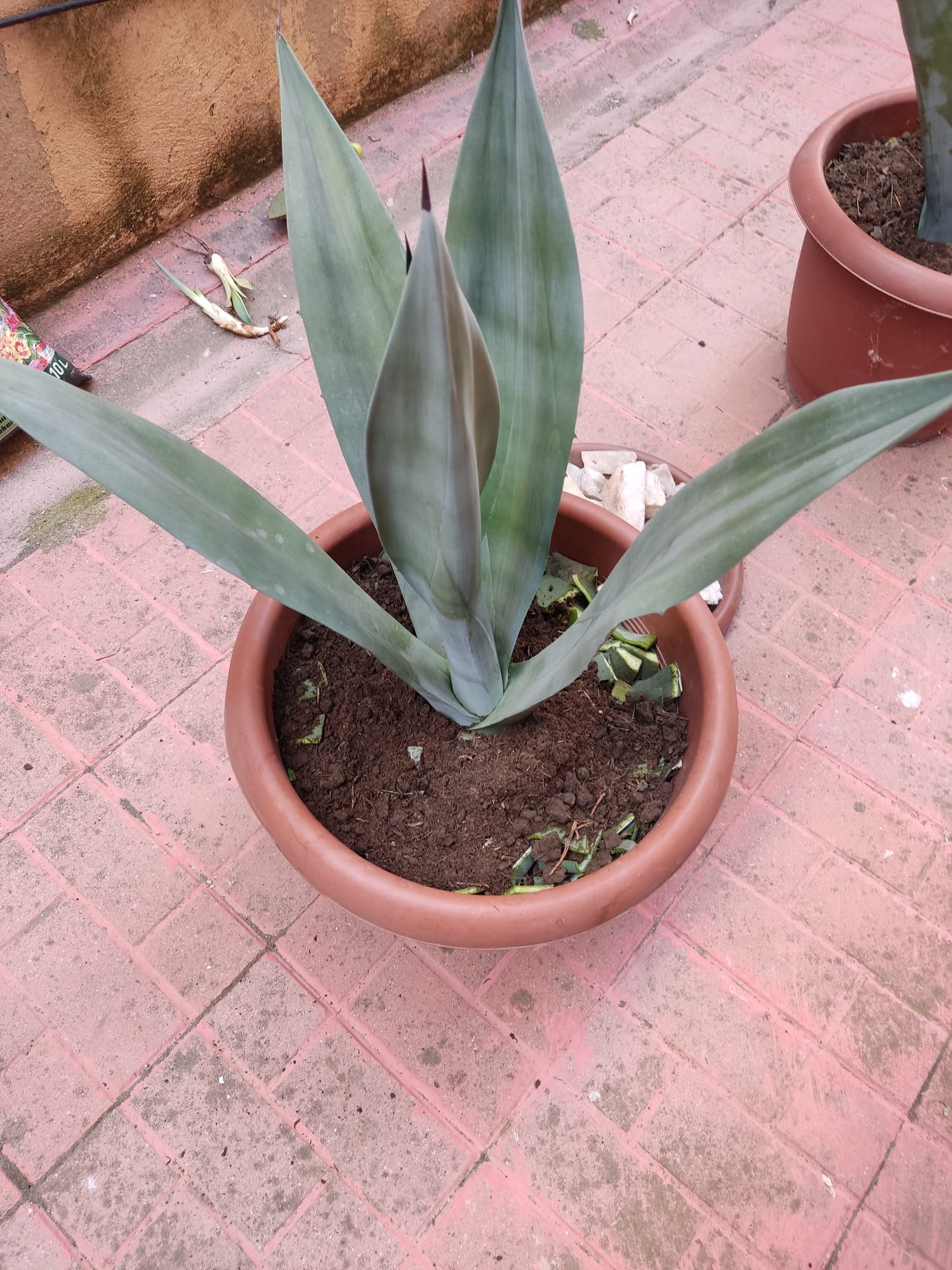 Aquí tenía un agave bastante pequeño que creo que nunca le puse basura orgánica para que se desarrollara mejor pero aquí la tengo con una buena ración