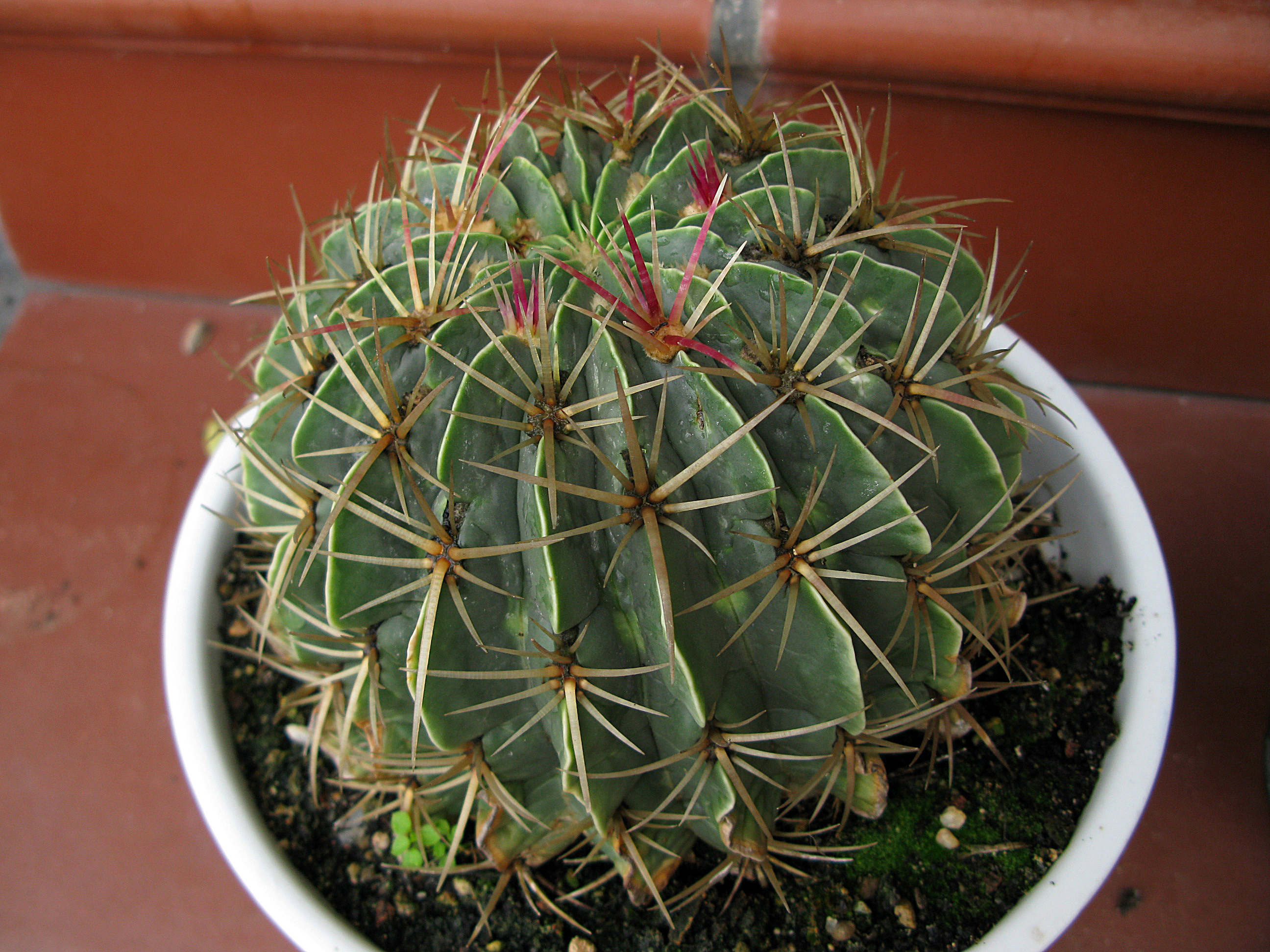 Buenas noches, les querría pedir ayuda tratando de identificar a 3 ferocactus (en teoría). Cada vez que voy a un vivero me gusta ver cactus de esos de 1€/2€ ya que muchas veces encuentro cosas interesantes. El de la izquierda, el grande, lo compré el sábado por 1,60€ y la verdad tiene buen tamaño. Se que es un ferocactus pero no logro adivinar la especie. El de enmedio también deduzco que es un ferocactus pero tengo menos idea todavía de que especie será. El de la derecha creo que es al que más me acerco porque estoy casi seguro de que es un latispinus. :smt100