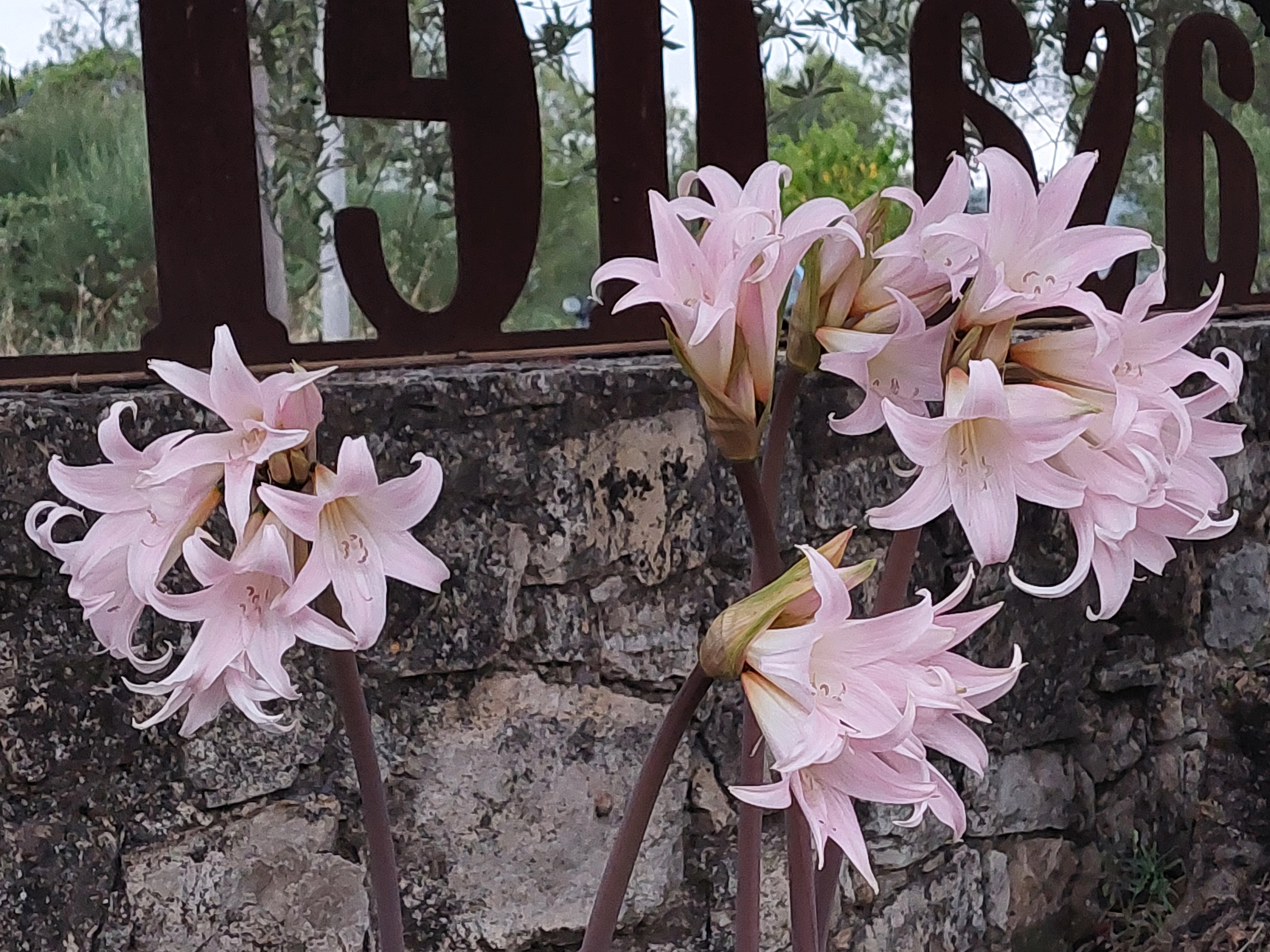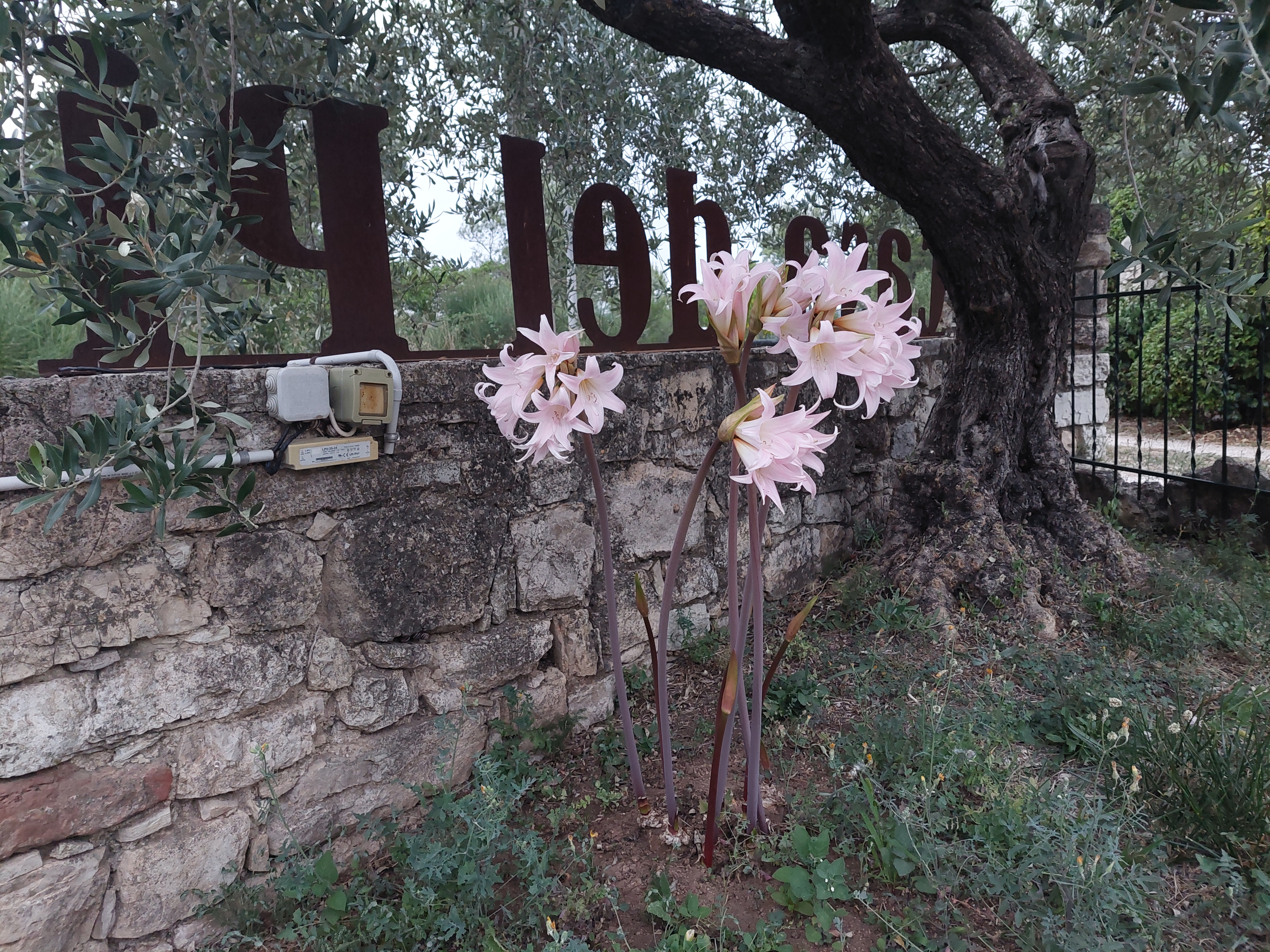 Debajo del olivo un día aparece una flor de amaryllis. Con el tiempo se ha ido multiplicando.