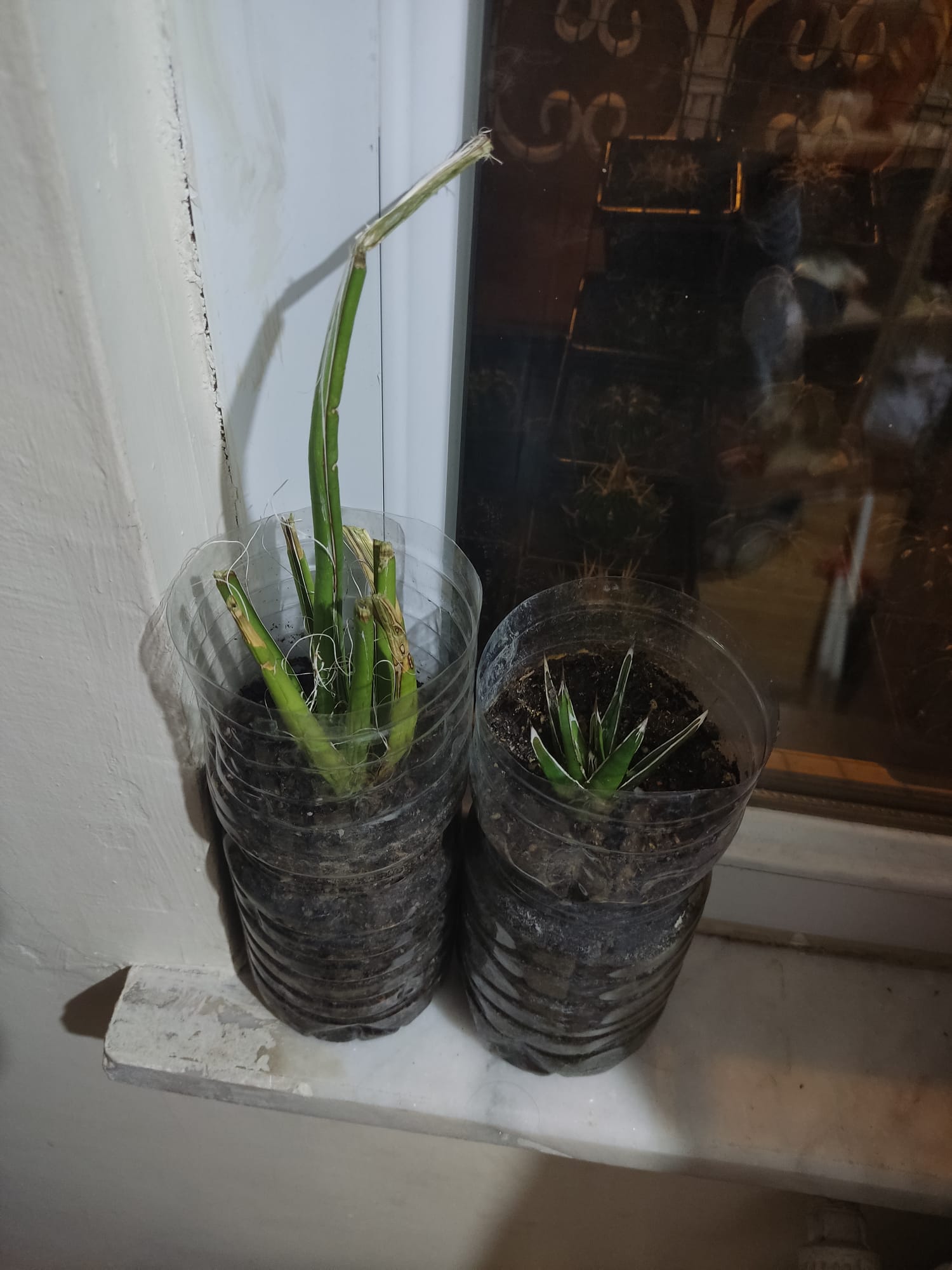 Estos dos son la misma planta eran dos brotes uno con aspecto adulto y otro con aspecto juvenil, pero se han desarrollado super poco, quizás por la pobreza de la tierra y que por ser pequeños no les puse mucha cosa de basura. Creo que a estos los voy a dejar ya como están porque de todos modos es una planta grande, que llegará un momento que se de cuenta de que es grande y se espabile.