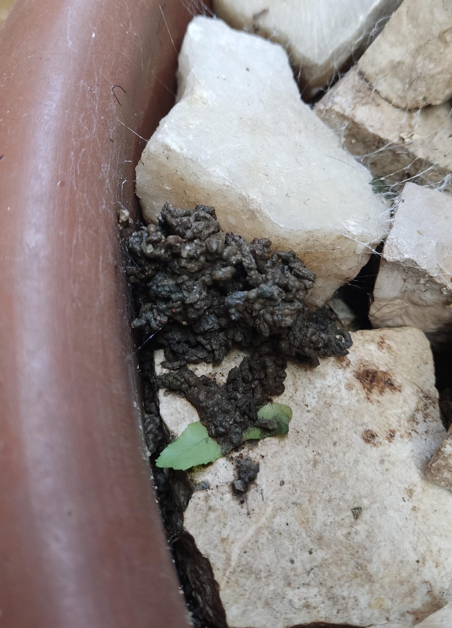 En una de las macetas había un hongo super extraño, no he hecho nada porque a la planta no le estaba afectando y había una cantidad brutal de lombrices, pero se veía en algunos mármoles como llenos de un polvito marron y otros mármoles así como con venas, es alucinante nunca había visto algo así un hongo parecía extraterrestre jajaja