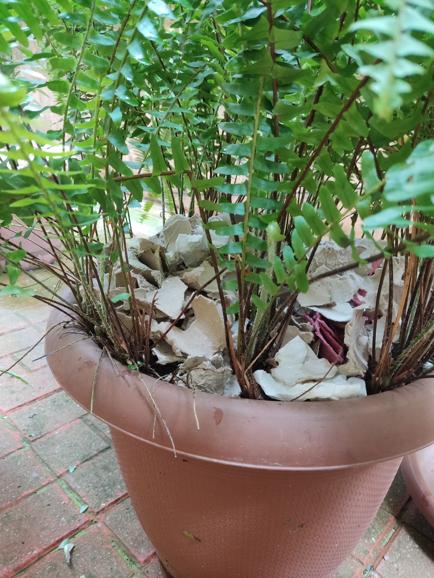 Hacia mucho tiempo que no le ponía nada al helecho pues toma cartón de huevos
