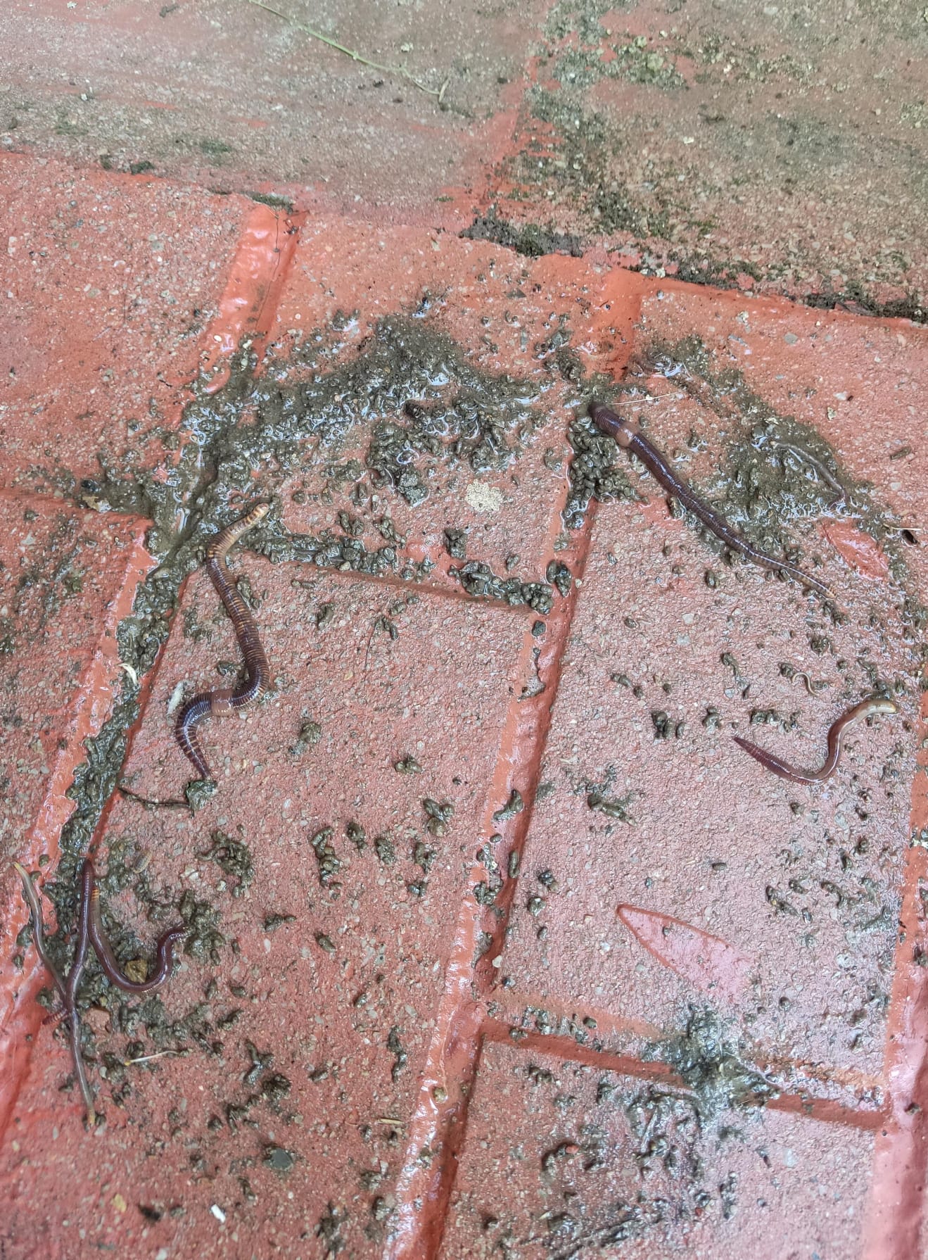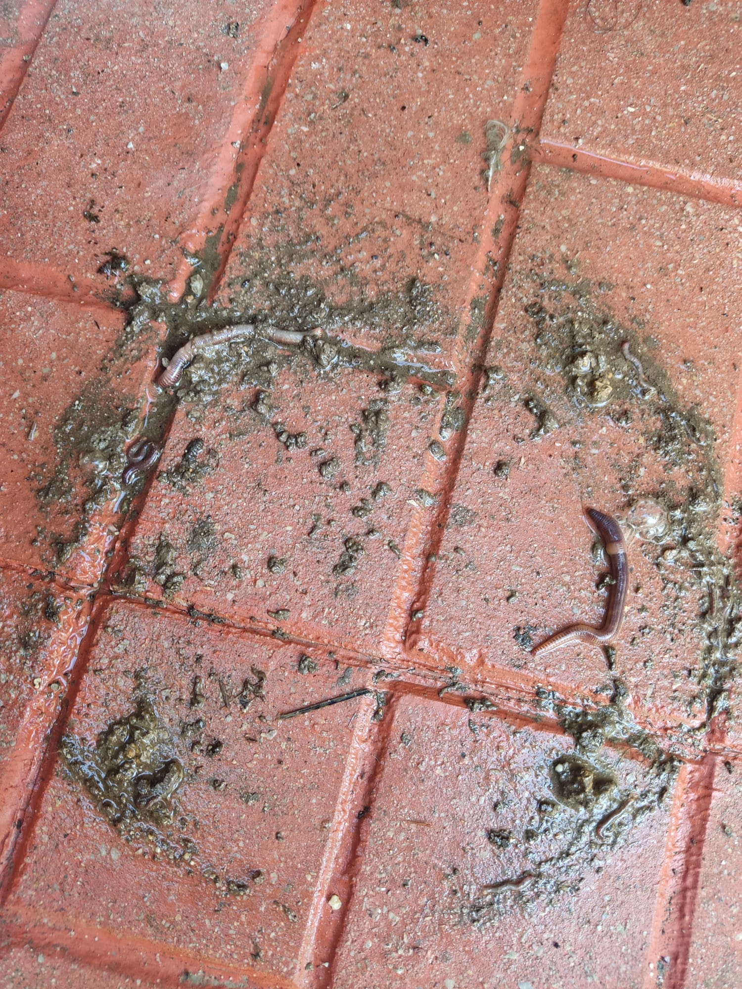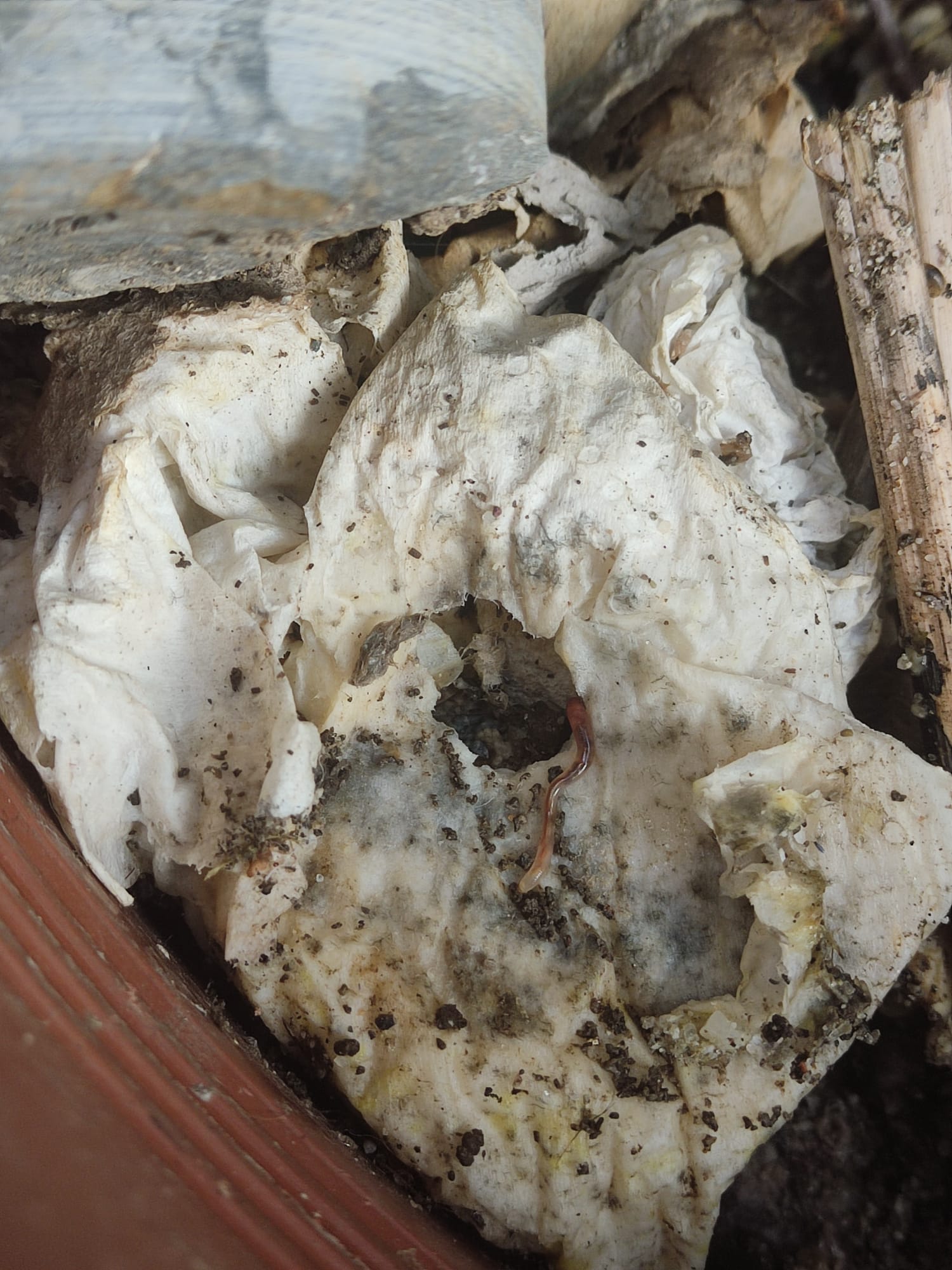 Minimo había cinco lombrices debajo de cada maceta que movía. Aunque parezcan menos en la foto o porque quizás ya retiré alguna.