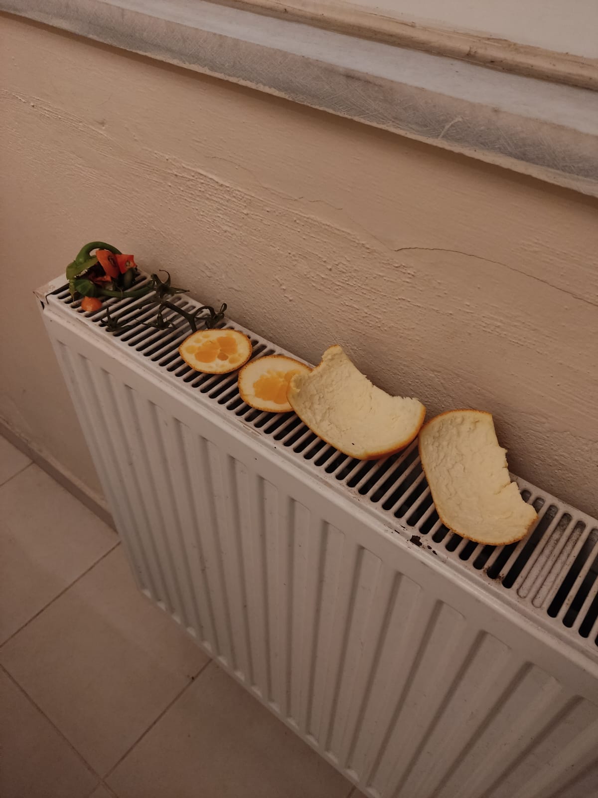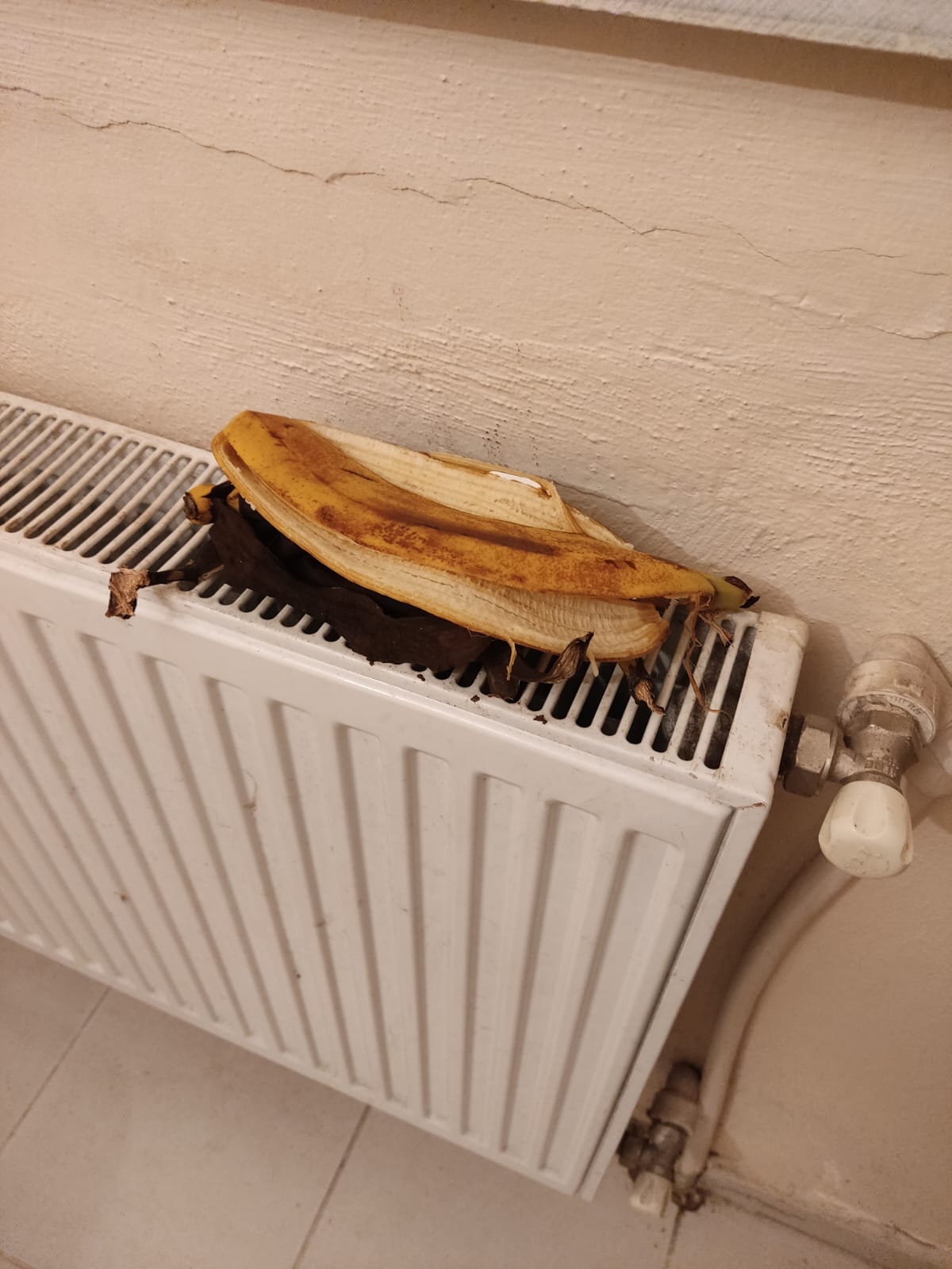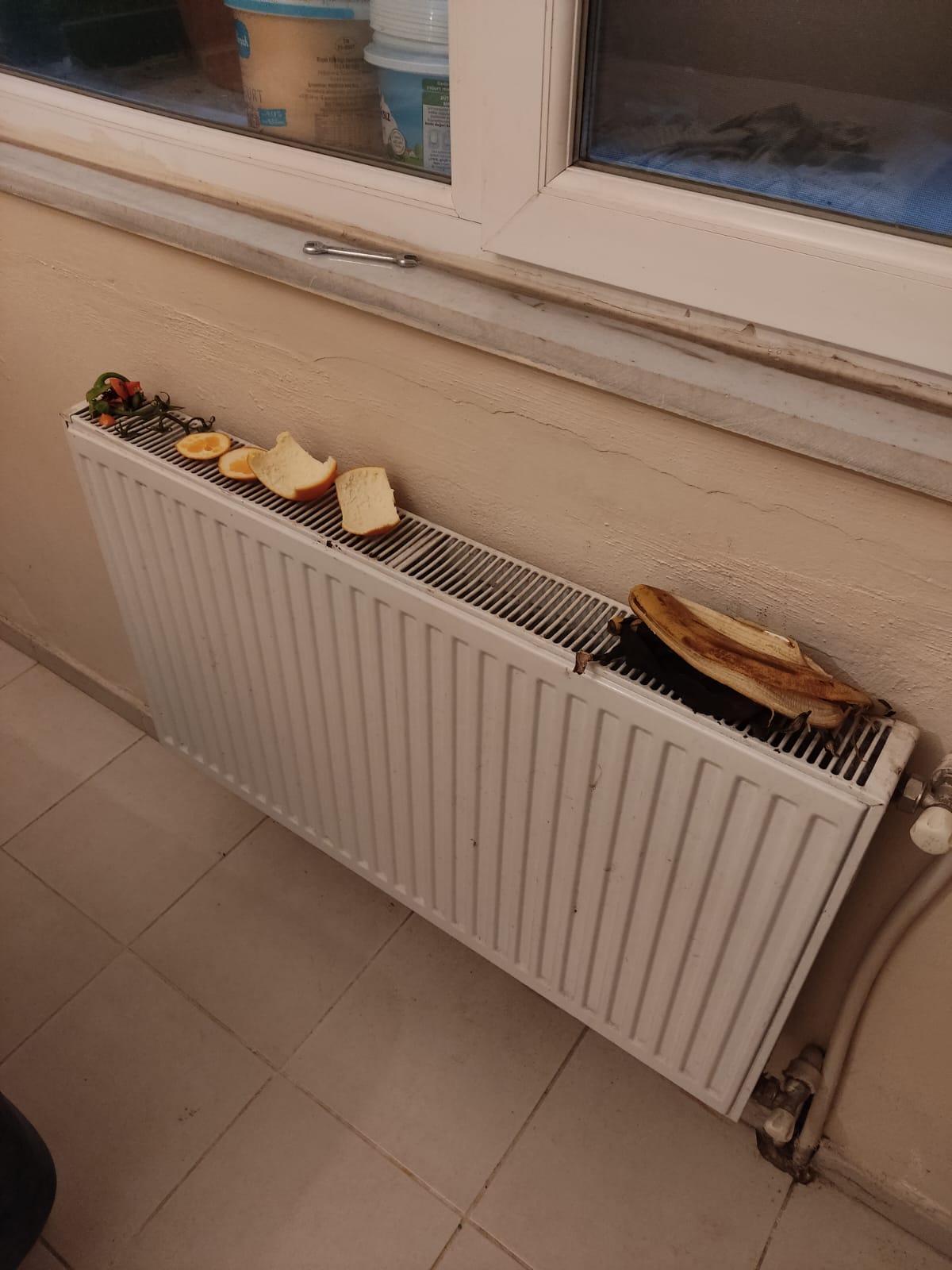 Pero ahora en invierno tengo puesta la calefacción y se me ocurrió poner las cáscaras de fruta y verdura encima a ver que pasa....