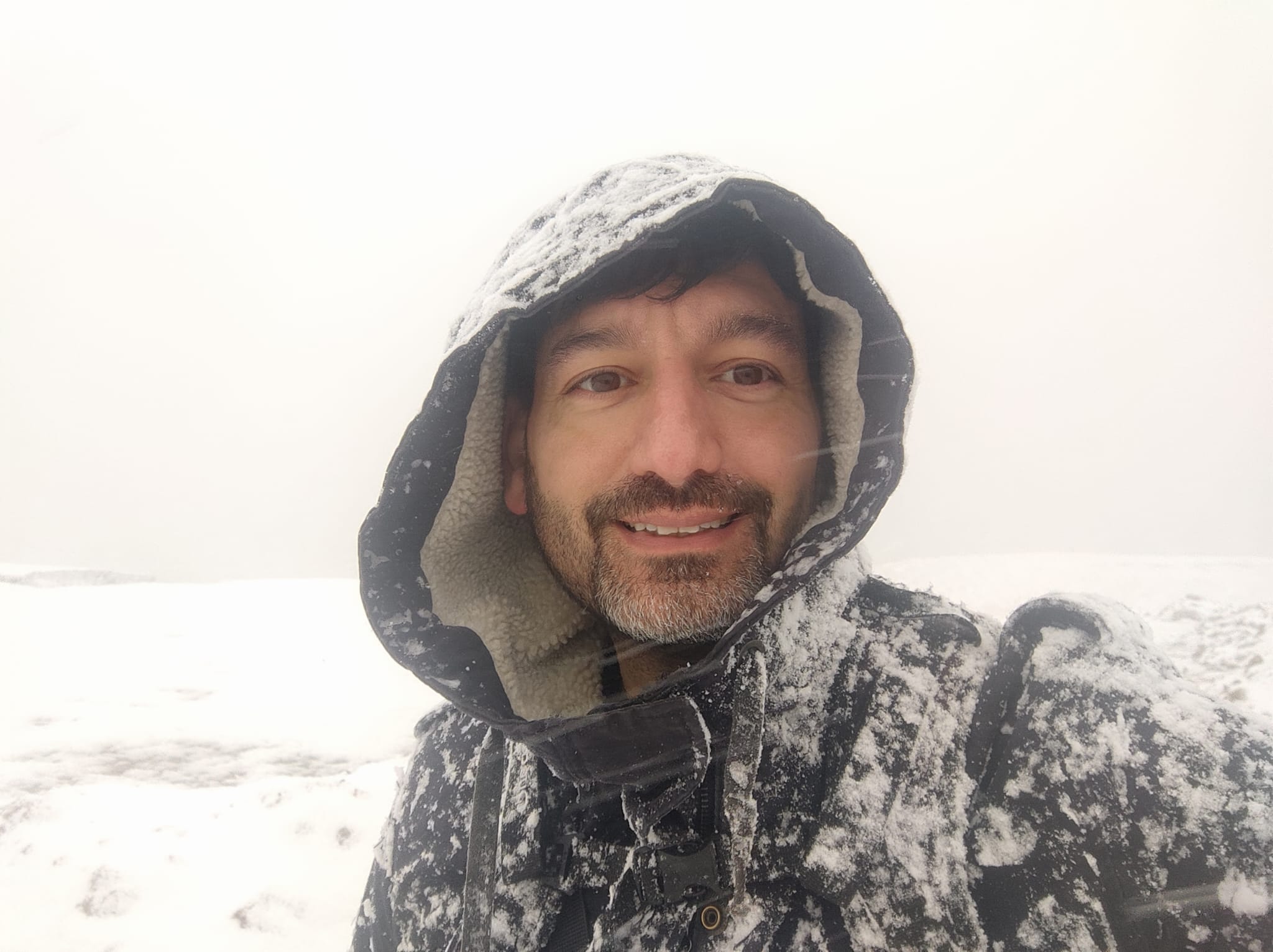 Esa foto es postureo, estaba casi sin poder hablar del frio y en un lugar que a penas se veía por tanta nieve a ratos....