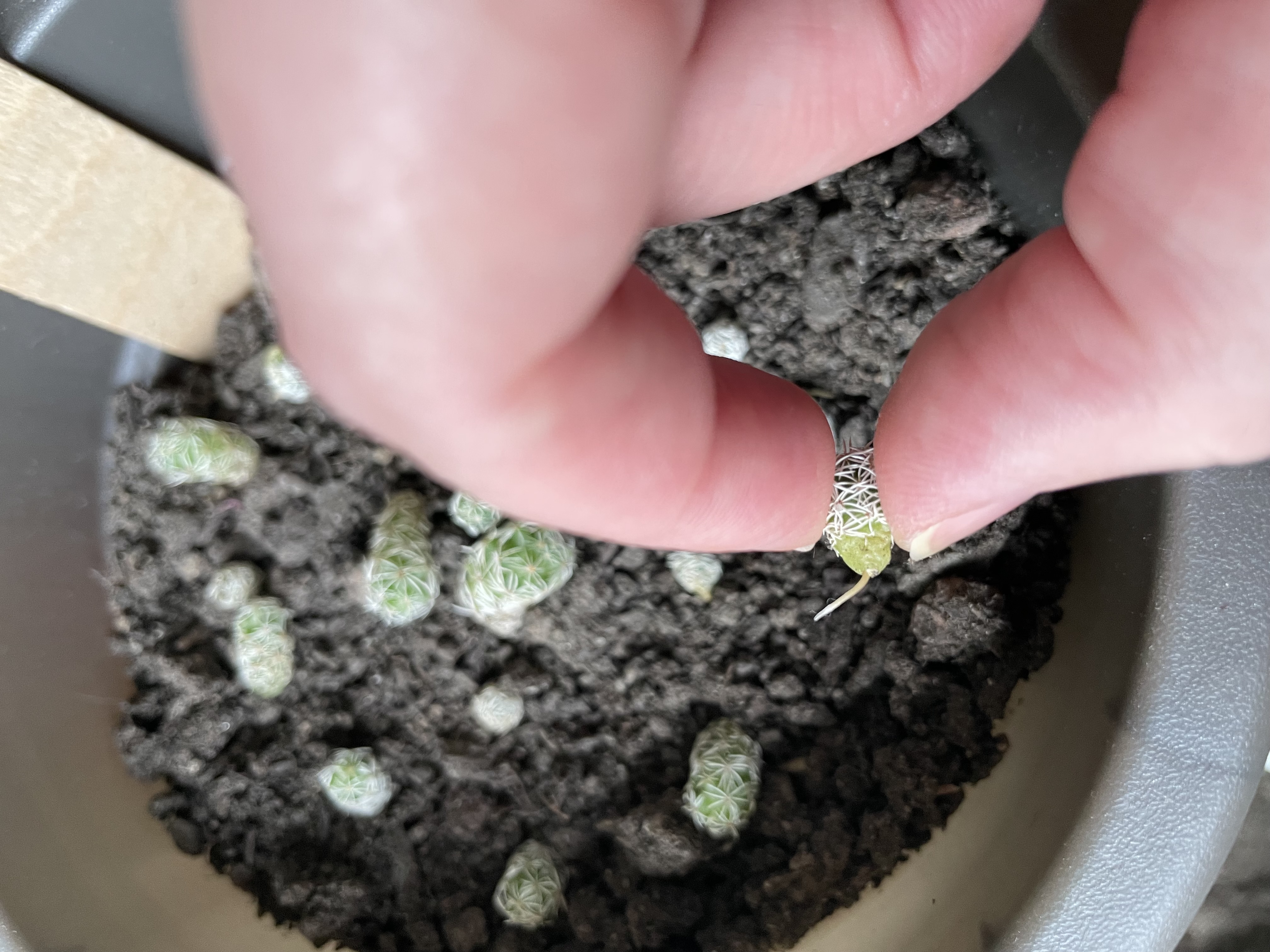 Quiero compartir con vosotros la sorpresa que me he llevado con un cactus dedal que me dieron y estaba junto al cactus cola de rata en una maceta empapada de agua.