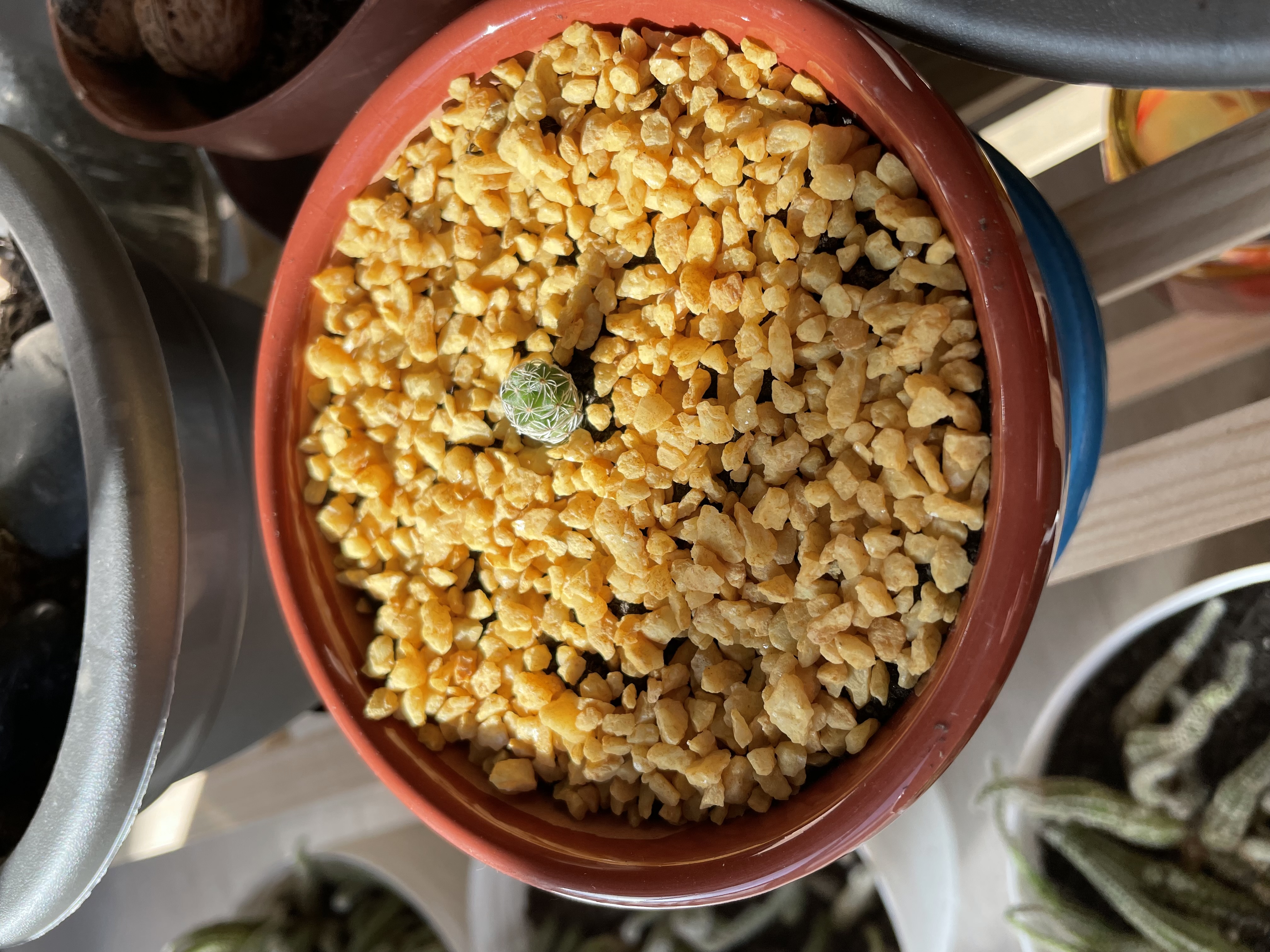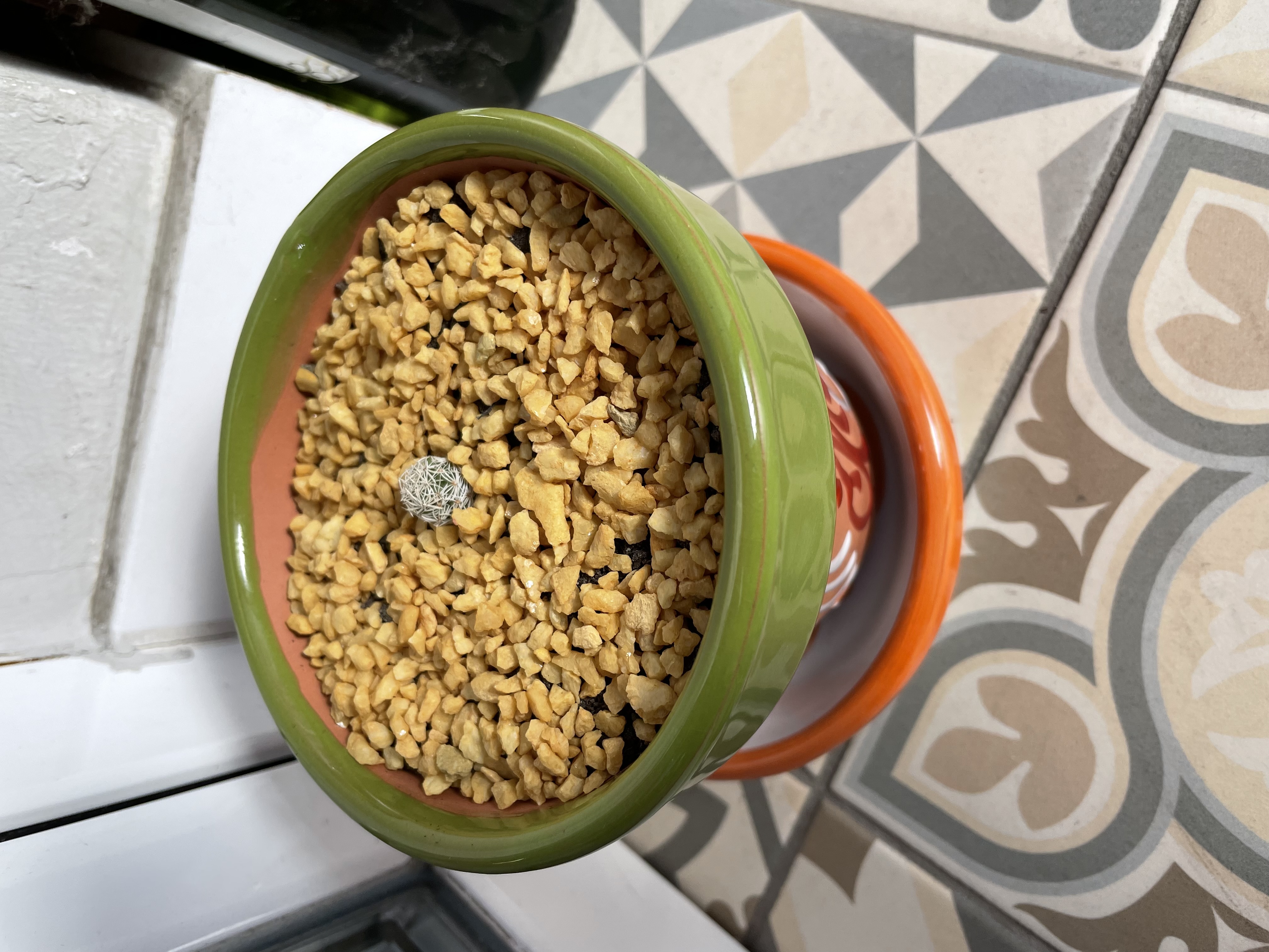He cogido dos hijos del mismo cactus madre más o menos igual de tamaño y con algo de raíz, tienen misma maceta, tierra y piedras la diferencia es que uno va estar en el balcón cerrado por lo que imagino la temperatura no será tan baja (Hoy se esperan -4°C) y el otro dentro de casa (normalmente a 18°C) para ver cómo se comportan según las temperaturas