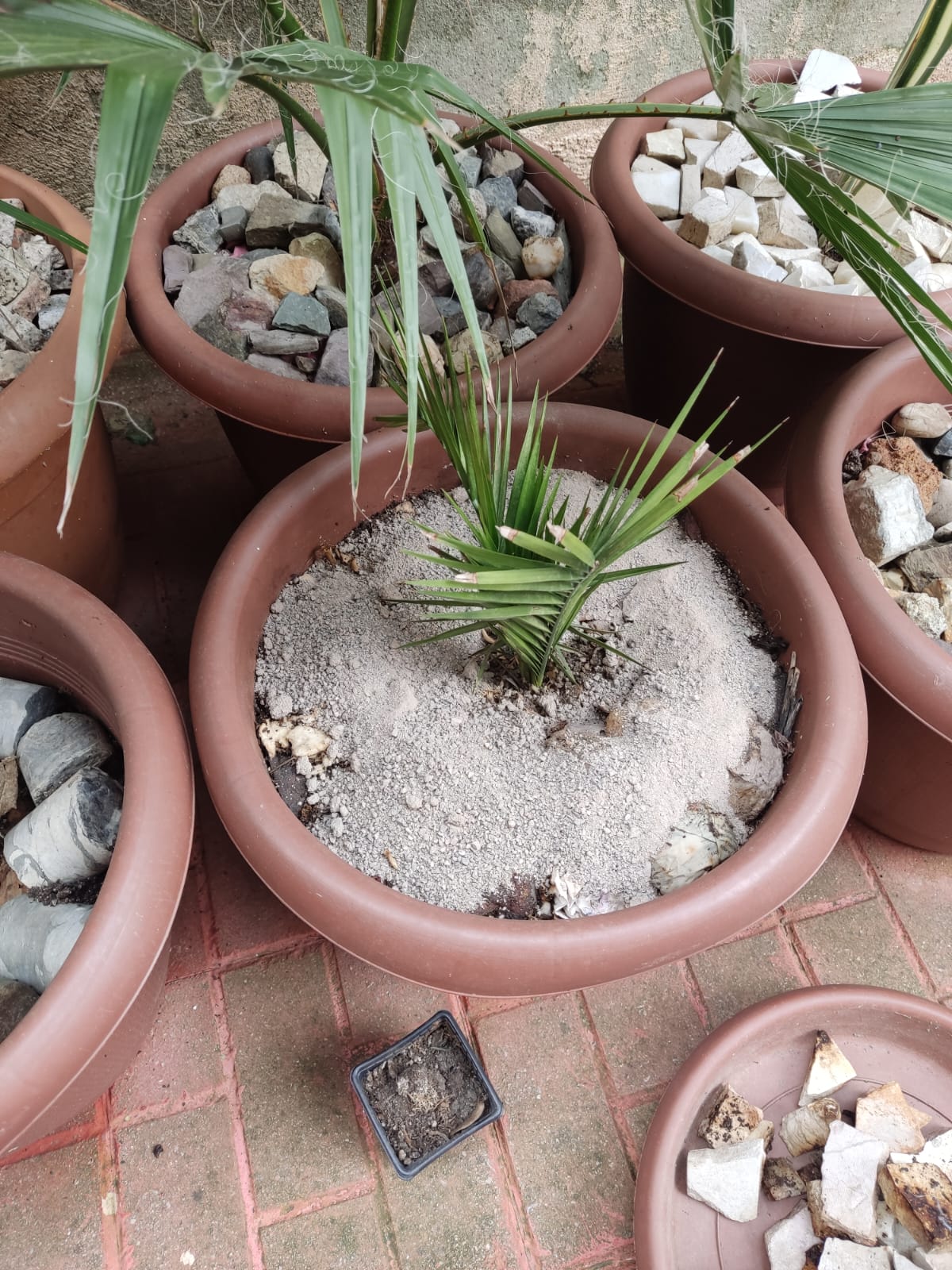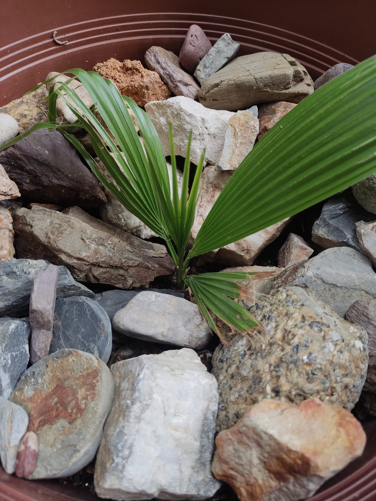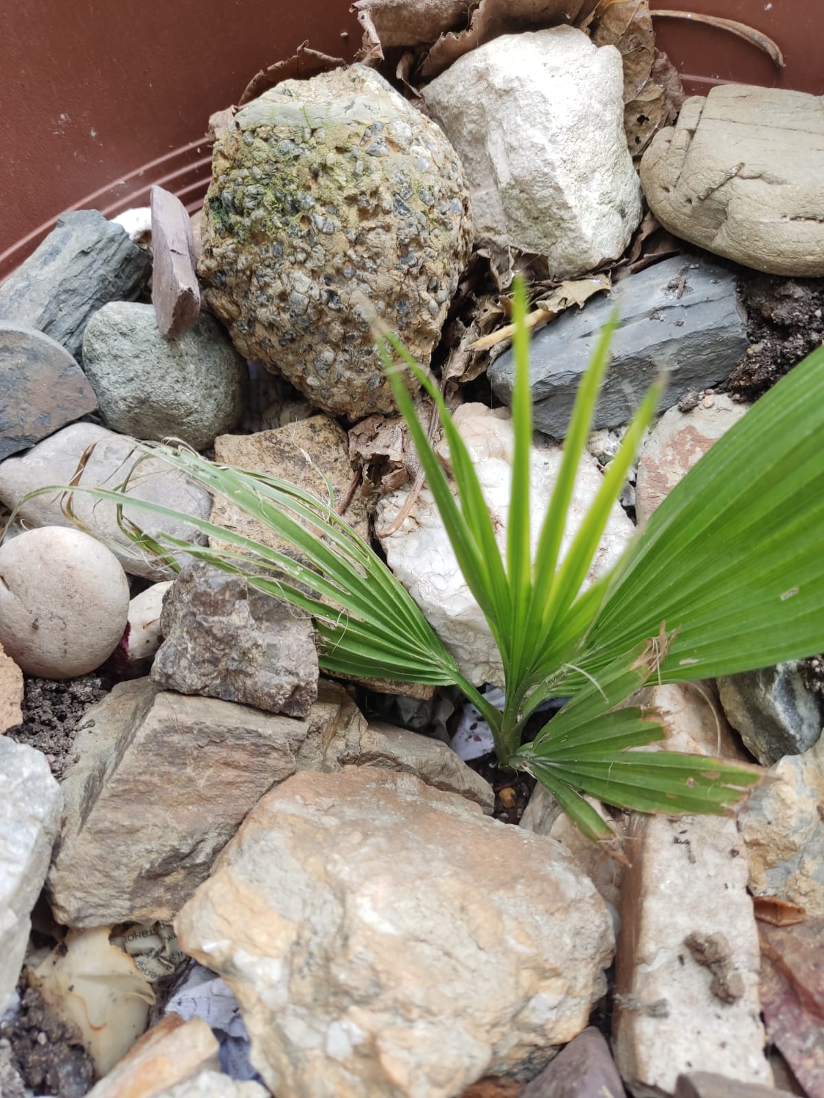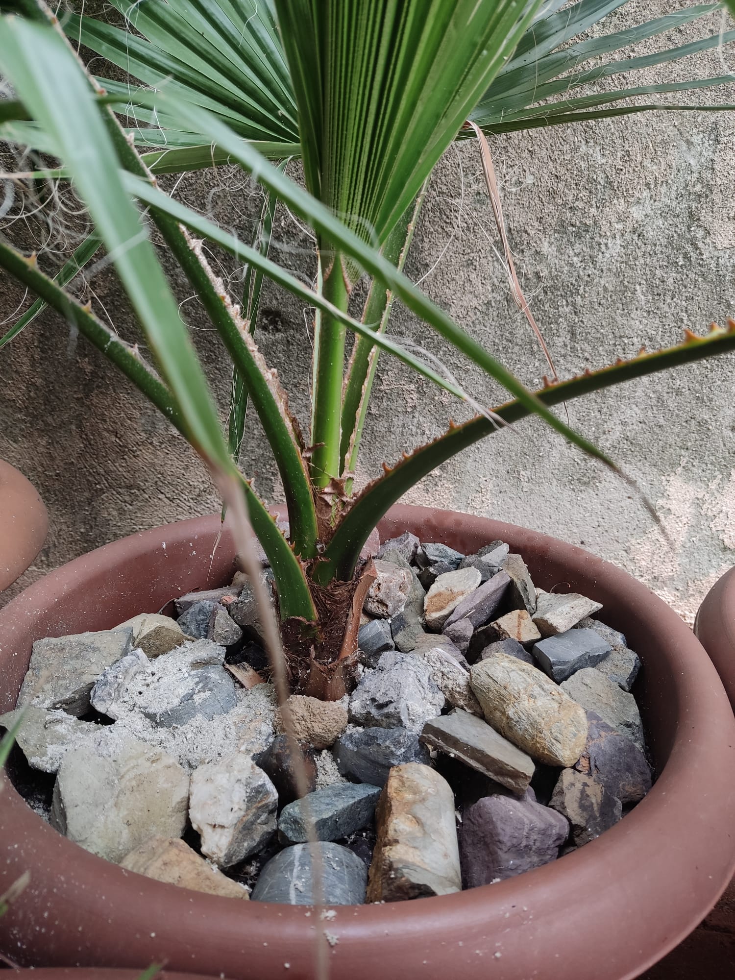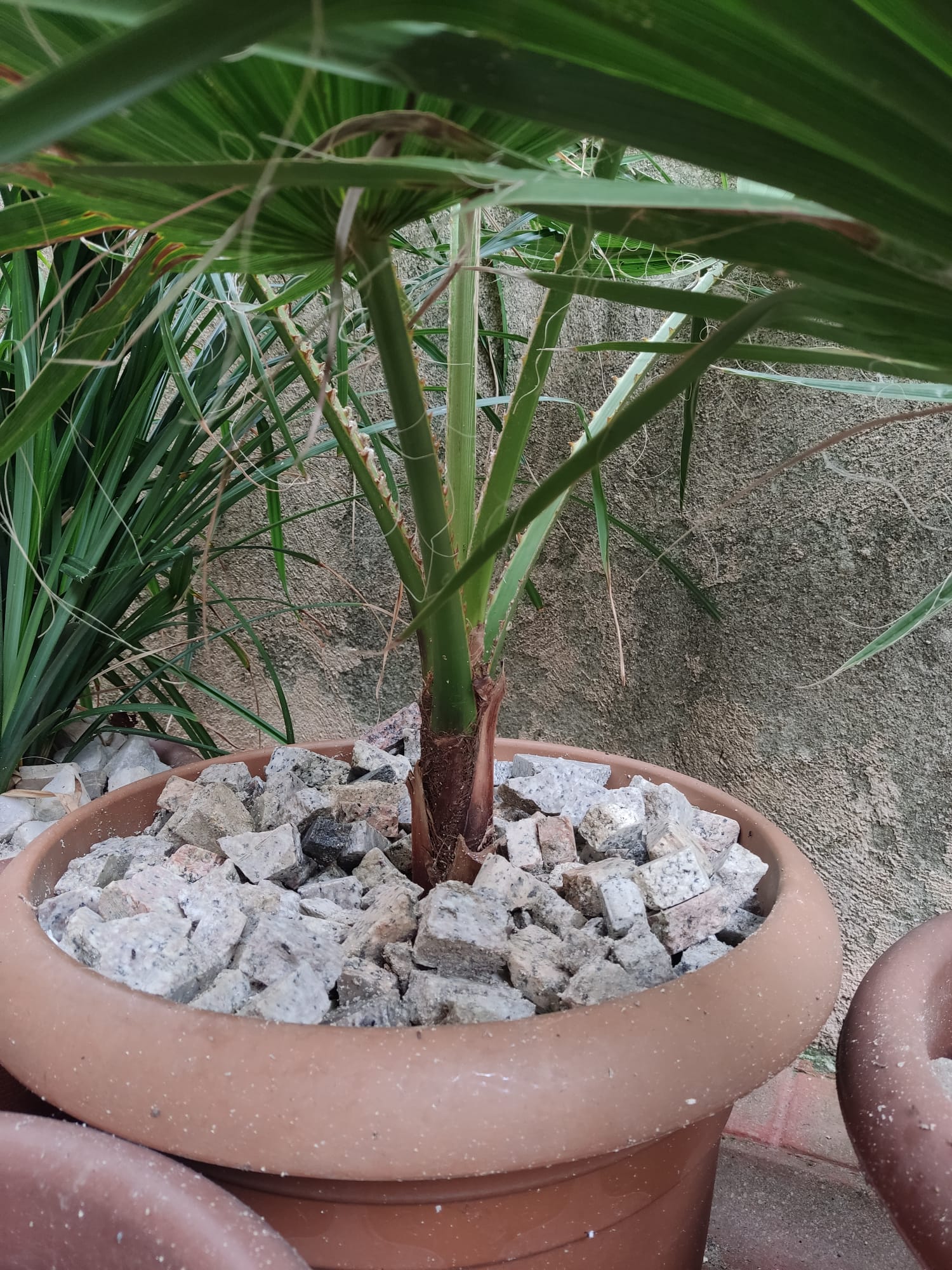 Esta palmerita se ve mas arriba en diversas fases la primera que me pasé de enterrarla y casi la mato, ya está super bien, seguramente la enterraré bastante en primavera