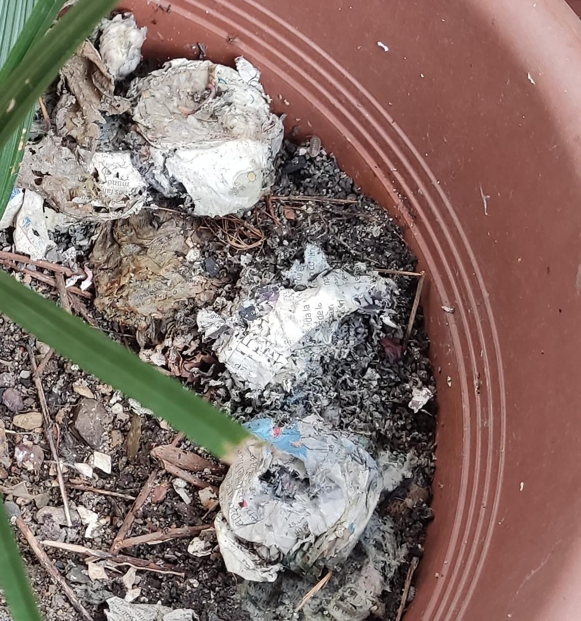 Le he levantado todo a la palmera anterior y le he puesto mas cosas, le puse podas de opuntias luego de congelarlas y mas cosas y parece que las lombrices se lo han comido todo super rápido no se si me pasé de la raya con esta maceta que le puse muchas lombrices.