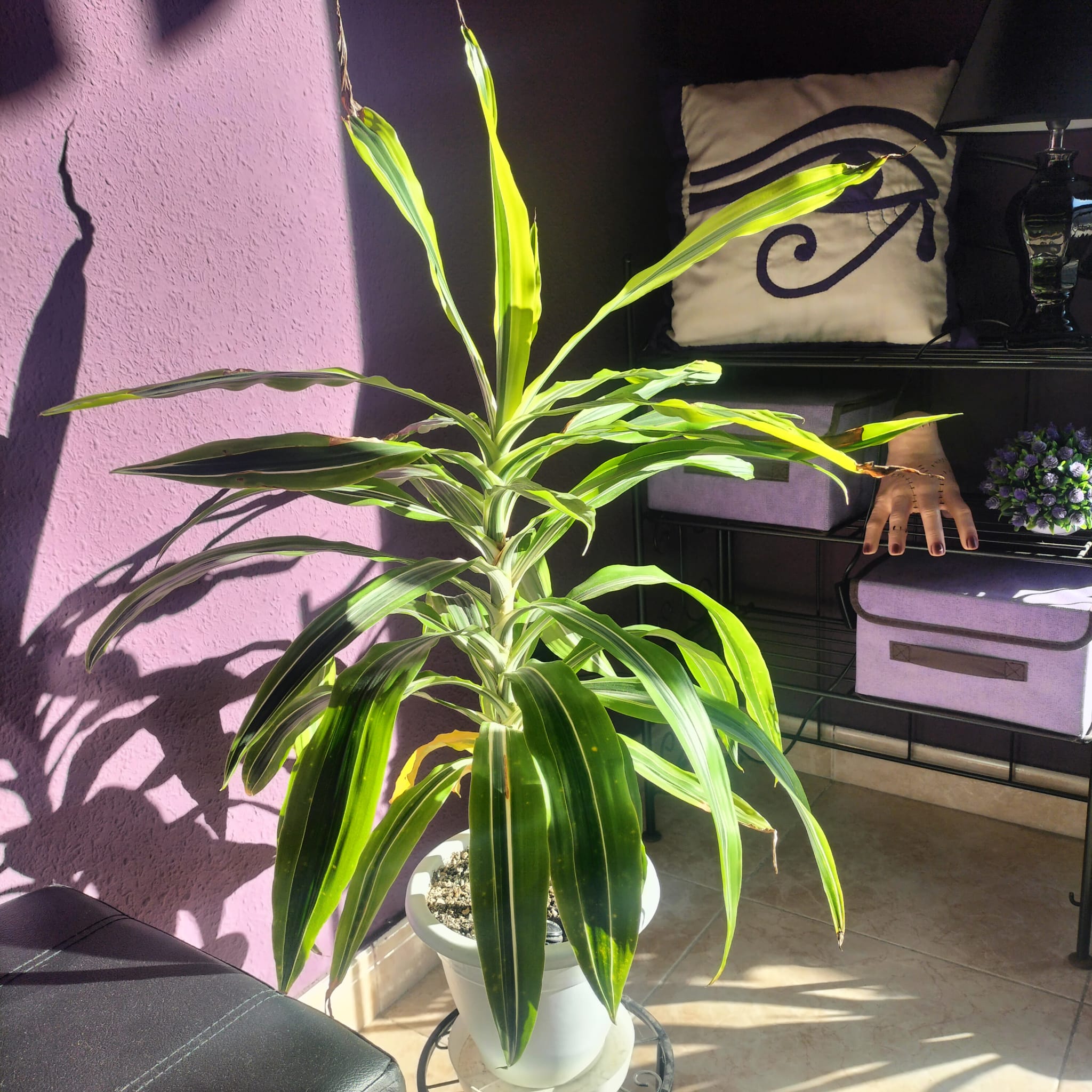Mi Dracaena deremensis lemon lime, que compré bastante pequeña hace casi 3 años y a este paso me sacará del piso. Y aunque me da algo de pena... en breve se irá a casa de mi hermana, que tiene más espacio.