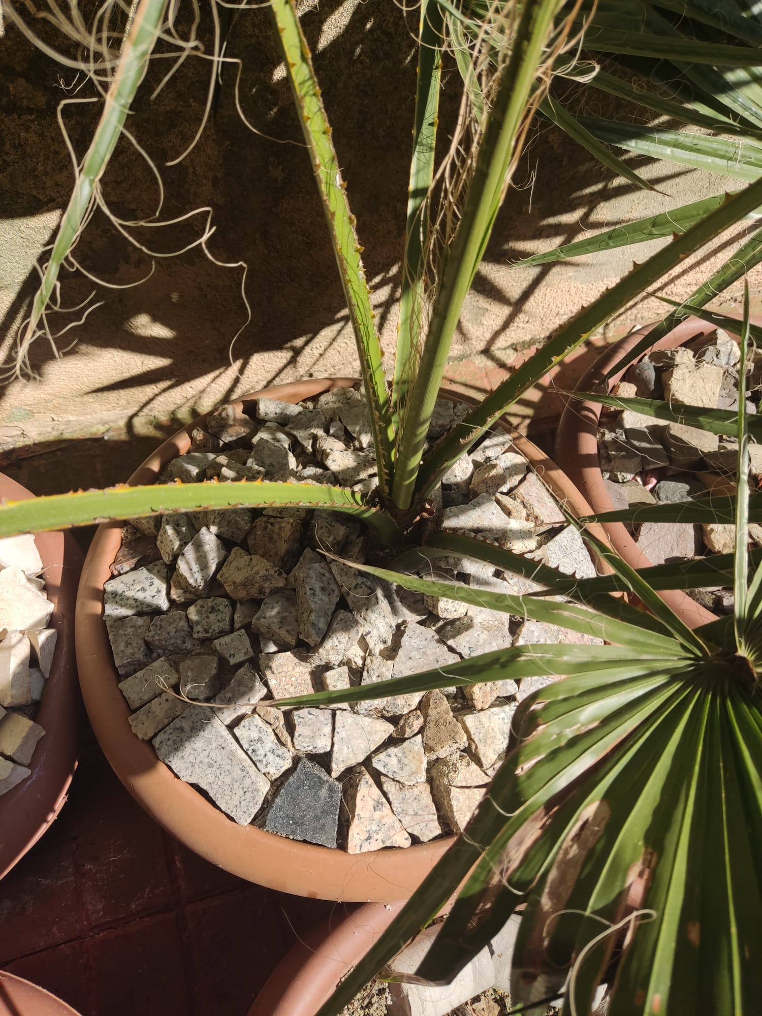 También había agaves que no pude encontrar pero esos son brotes que las madres sacan a decenas cada año pero esta palmera por suerte la pude encontrar y ya decidí quedármela yo por pobrecita por maltratada, se pasó nosecuantos dias bajo tierra y piedras y realmente era la única que estaba relativamente superficial y mas o menos me acordaba de donde estaba mirando fotos.