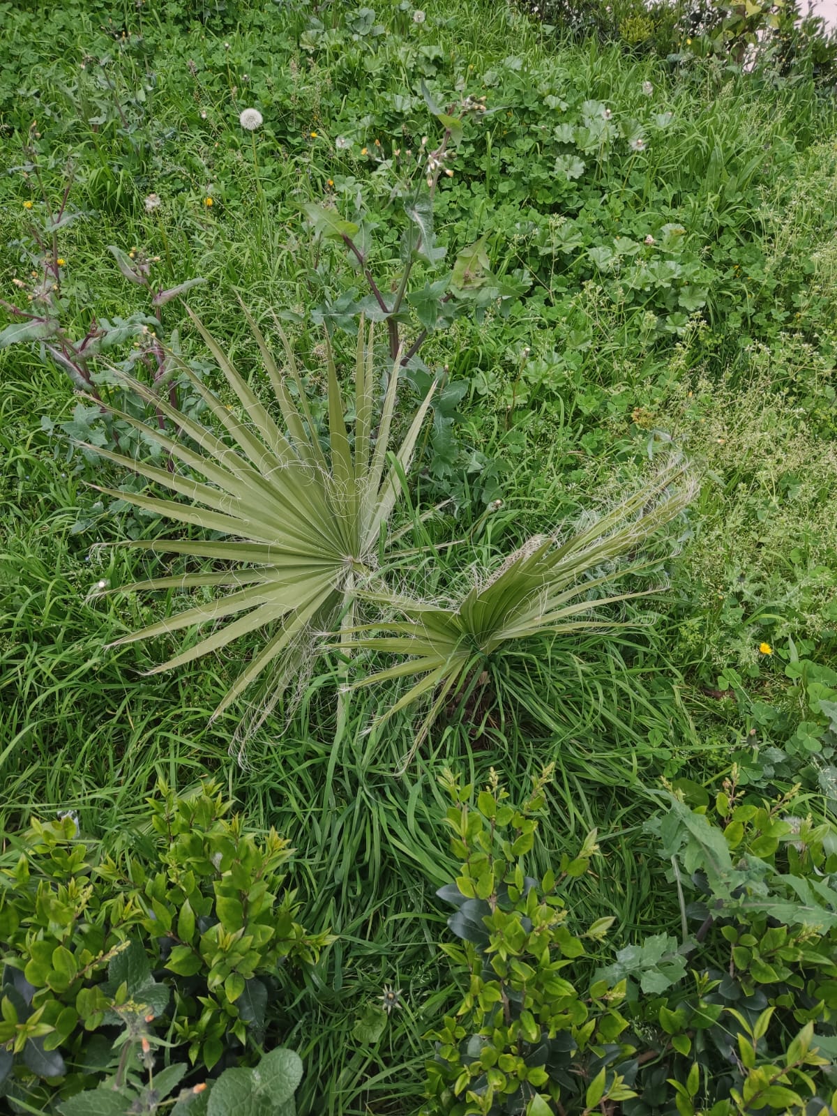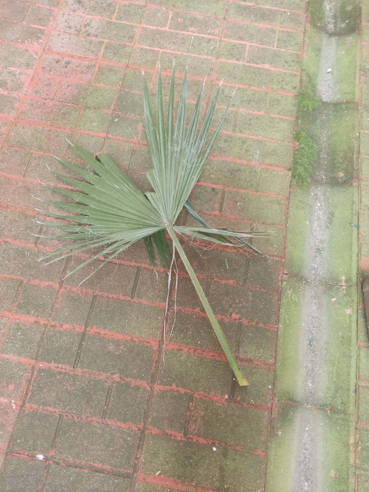 Y esta palmera es la que tuve que sacar de estar bajo tierra unos dias cuando una excavadora destrozó el descampado donde la planté.