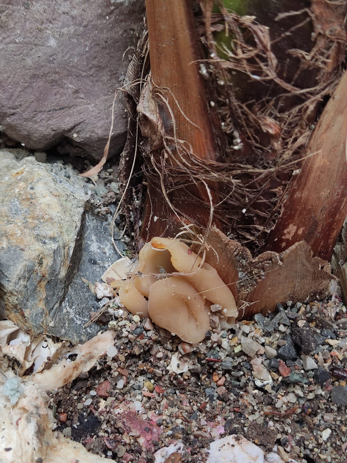 Antes de terminar me ha sorprendido este hongo, que es el típico hongo de bosque, que ha venido con la tierra del bosque que le echo, pero yo siempre me olvido de que bosque a que palmera le eché, es guapísimo el hongo...