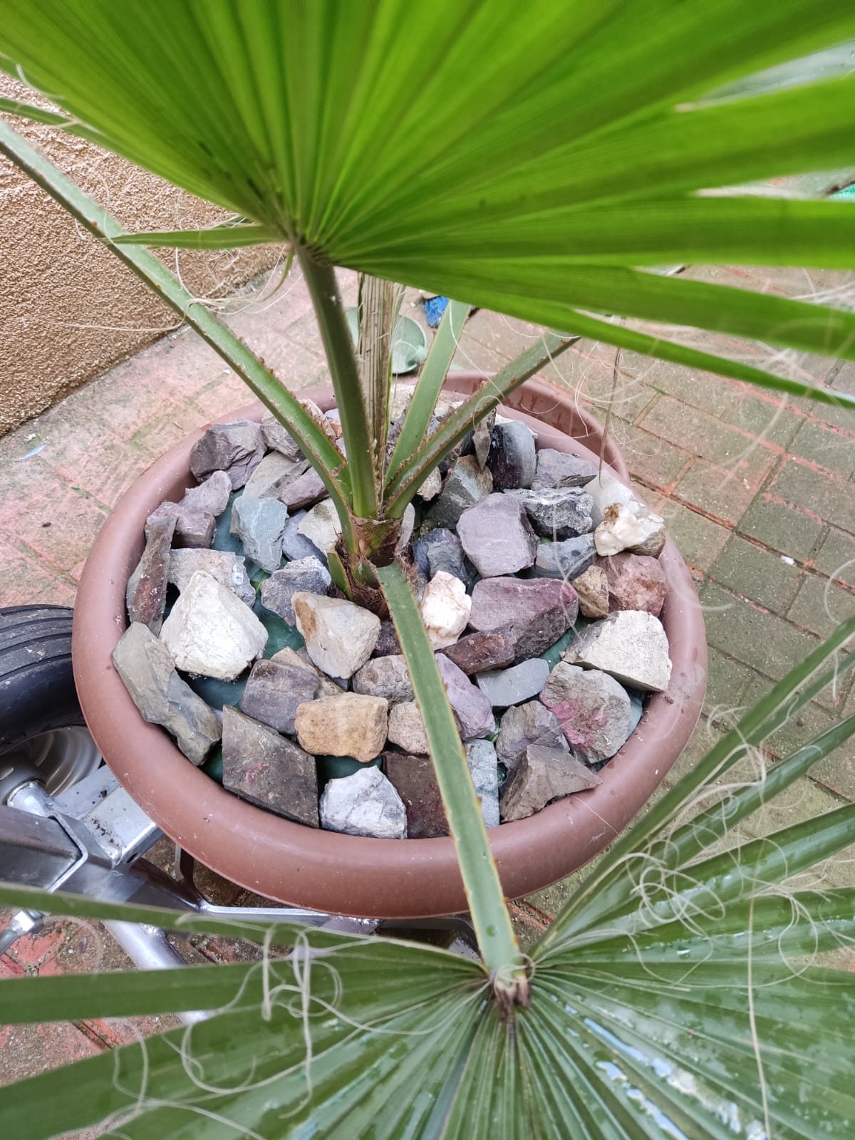Esta palmerita se ve mas arriba en diversas fases la primera que me pasé de enterrarla y casi la mato, ya está super bien, seguramente la enterraré bastante en primavera