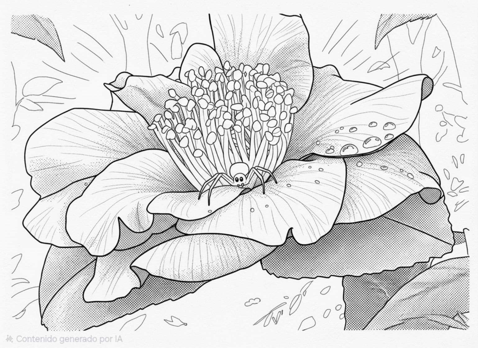 Le pido a la IA del movil que ponga el fondo negro y que ponga unas gotitas de rocío en algún pétalo y tanteo para que me ponga otros bichillos, al final lo consigo con una araña amarilla ahora le voy dando a diferentes estilos y he guardado ese... y luego éste.