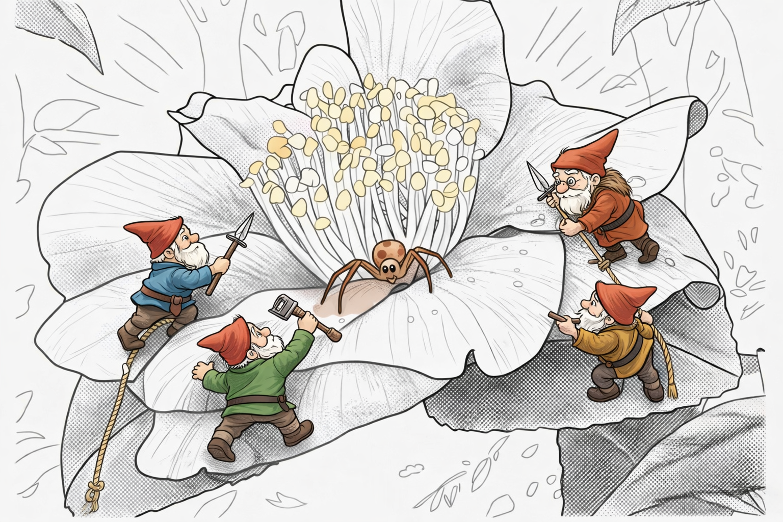 Luego le pedí que me pusiera un enanito durmiendo la siesta en un pétalo igual no me entendió lo de la siesta porque me contestó que pensara en otra cosa que eso no lo podía hacer