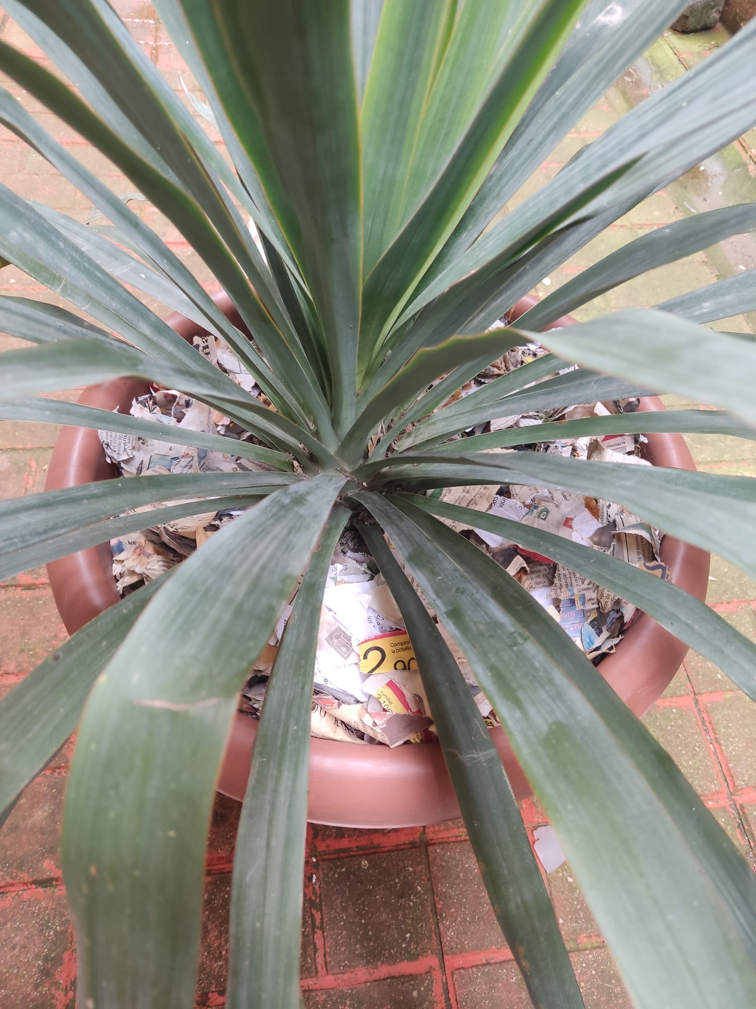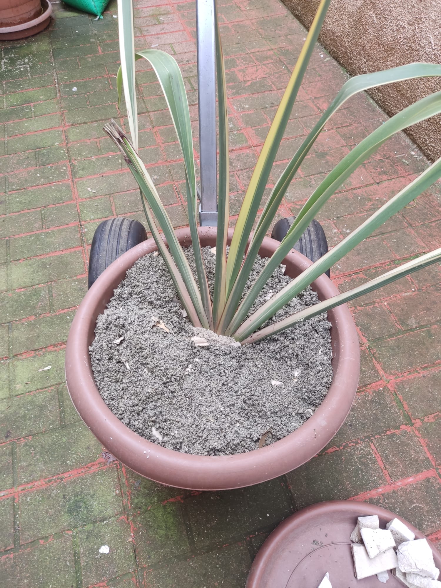 A la última de las yuccas le puse cáscaras de huevo a montones. Creo que el problema que tiene en las hojas quizás sea por la humedad en la tierra, porque vi que las que estaban plantadas en la calle que es casi imposible que se les acumule agua de mas, estaban bien, y la unica pega que tiene esa planta es que la tierra todavía puede ser bastante mala, pero es probable que cuando vea caer el nivel de lo que he colocado, le coloque una capa mas gruesa de arena y encima todos los restos posibles de verdura y fruta. Ya veré.