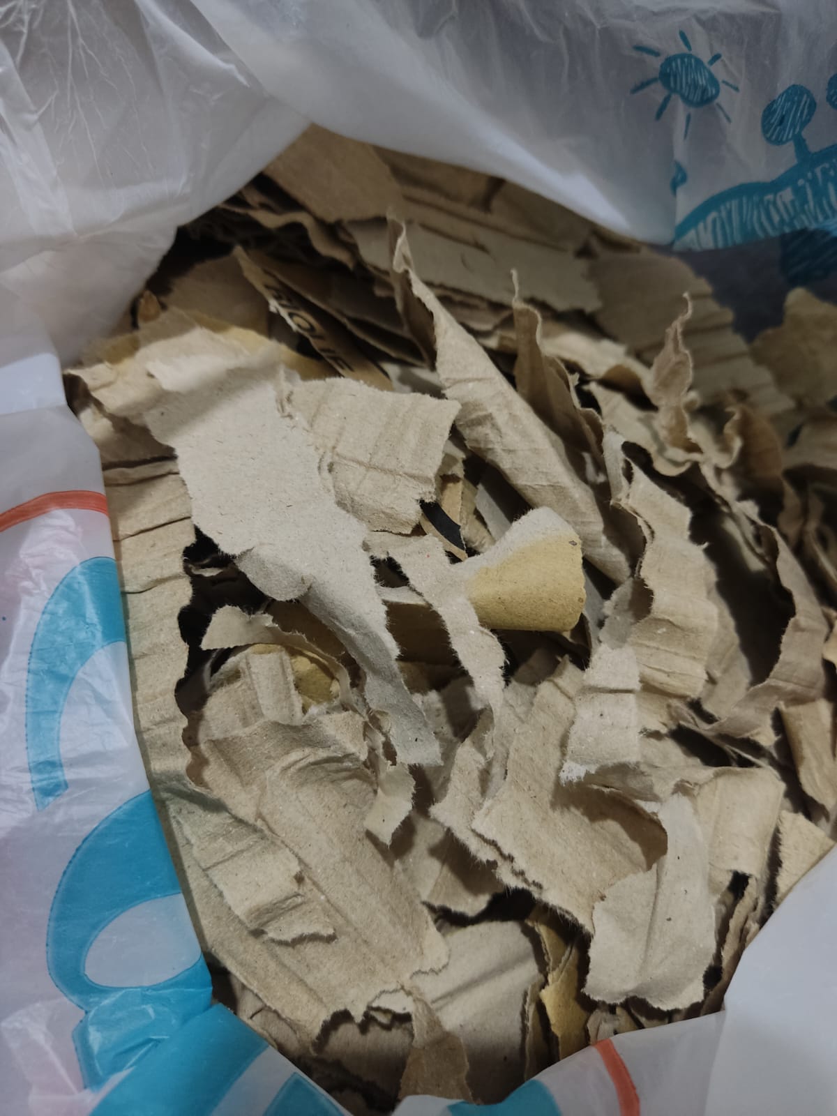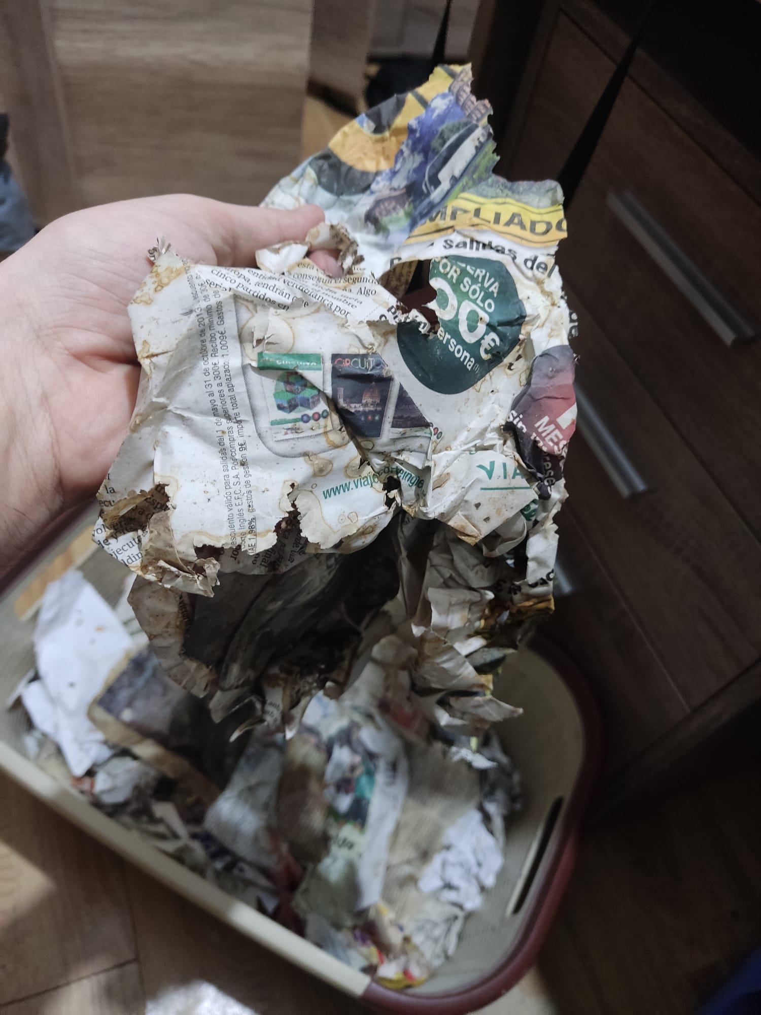 Se me olvidó hacerle una foto a la bolsa con todo el periódico cortado en trozos pequeños.