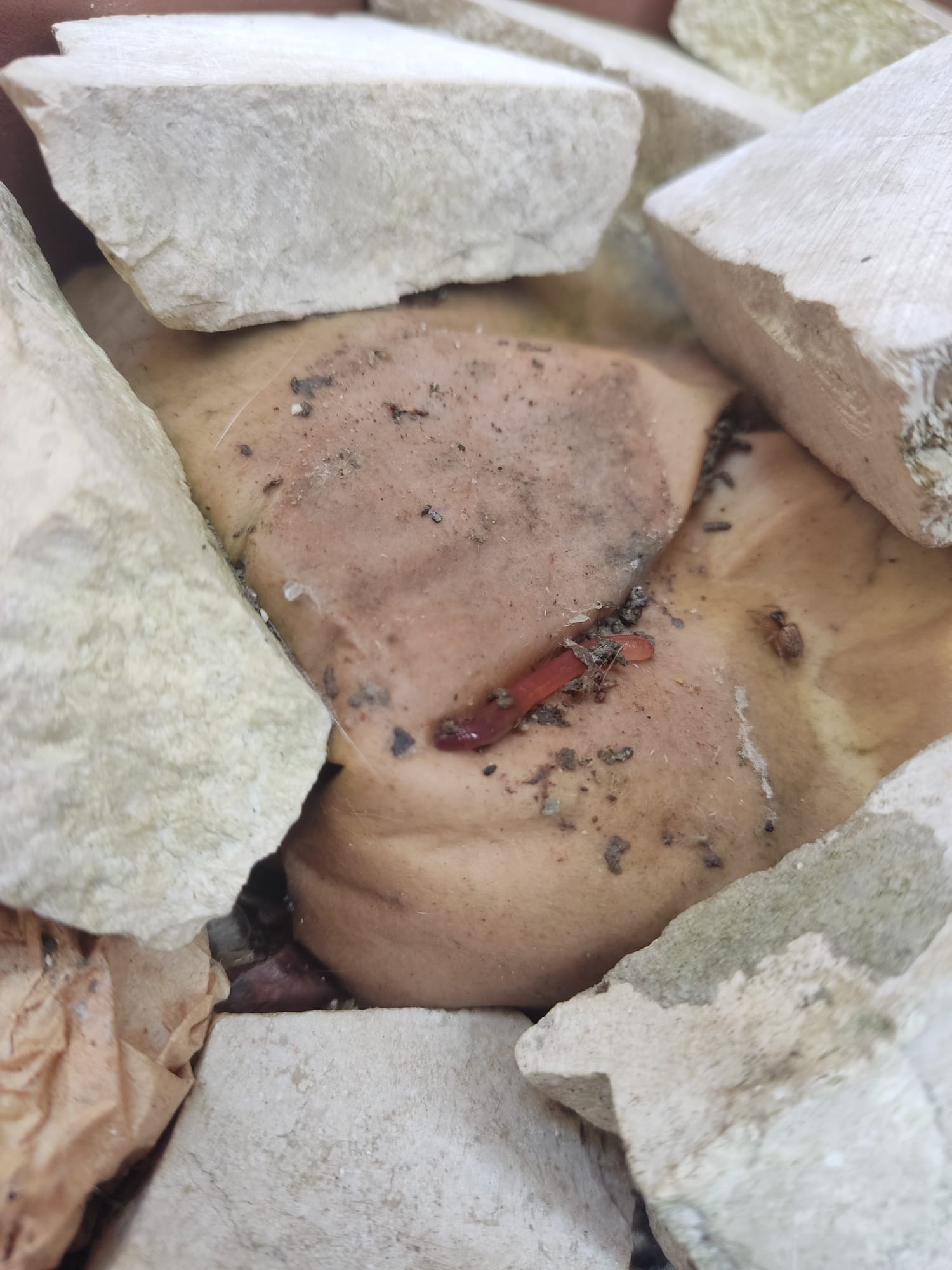 Fue dos días antes y había llovido algo descolocando lo que vi, además creo que cometí un error poniendo esa fibra de palmera justo ahi, quizás hasta que no se moje y se pudra un poco no volverán. Pegado a la piedra que tapaba eso hay un pegote de papel higiénico mojado.
