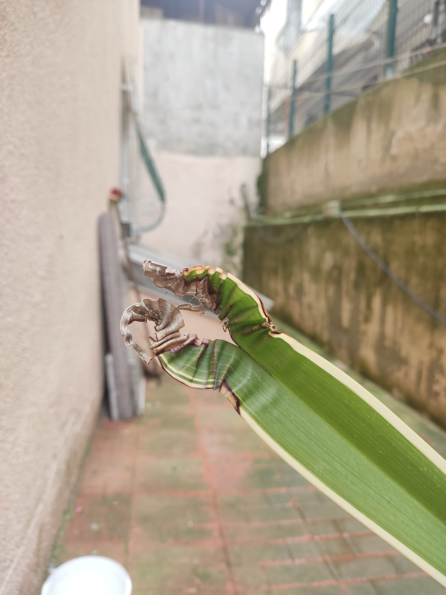 Aquí tenemos el estado actual de esa hoja deforme que le salió que se prohibió ser cortada... todavía resiste