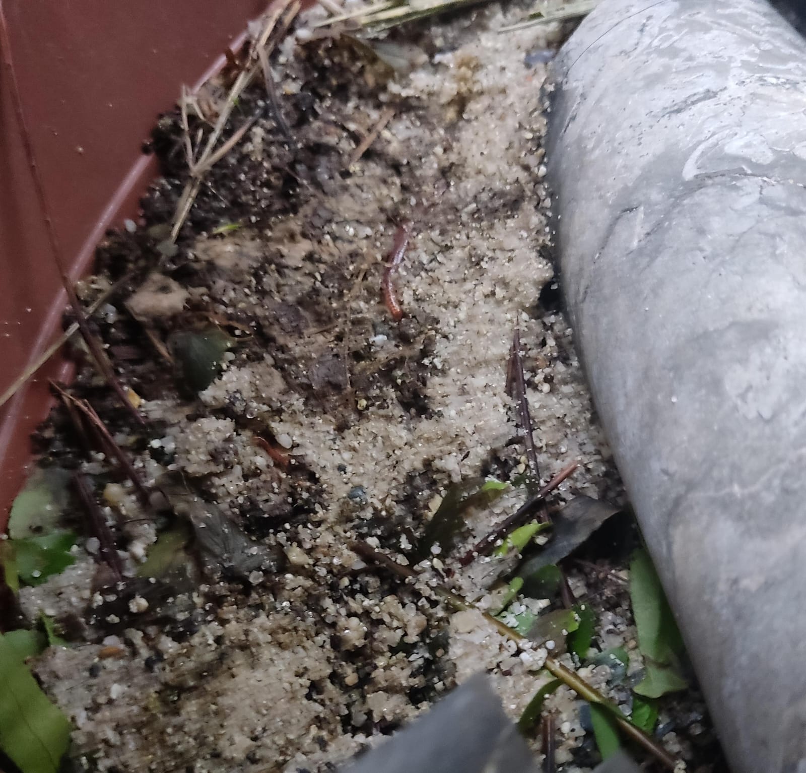 Y pienso que puede haber superpoblación, vi una lombriz en el lugar del suelo de granito, estaba muerta ya y era de tamaño mediano a pequeño, y parecía perfectamente sana entonces no se que haría si se perdería o que y vino un poco de sol y adiós. No se ya veremos ojalá que no ocurra mas pero creo que o lo puedo controlar al cien por cien sobre todo si hay muchas aumentará la probabilidad de que se vayan a donde no es. no hice foto a esa lombriz muerta.