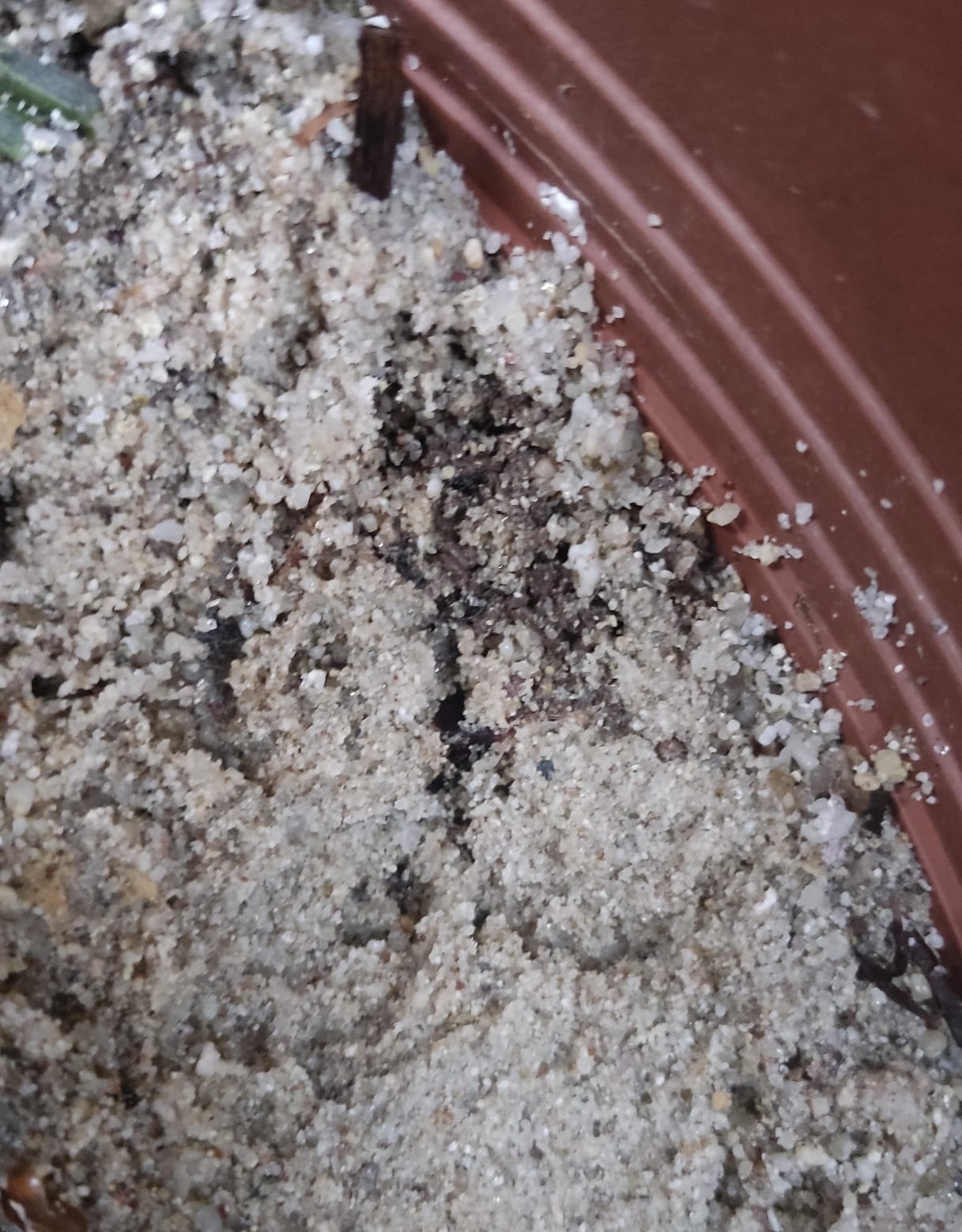 Cuando haya arena que no se mezcle pues meter lombrices gordas a ver si son de la especie que mezcla perfil. Pero por lo que veo se pueden poner capas bastante gruesas de arena encima que te lo van a mezclar a bastante profundidad, GPT decía 1 cm de arena, ahí había mas de eso. En fin....