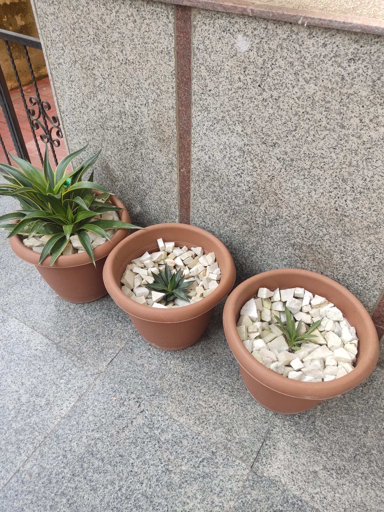 Igual aproveché y las puse en macetas que me convenía que estuvieran. O no se si será ya superpoblación, estas son bastante medianitas, o que estén enfermitas "tontas" ni idea