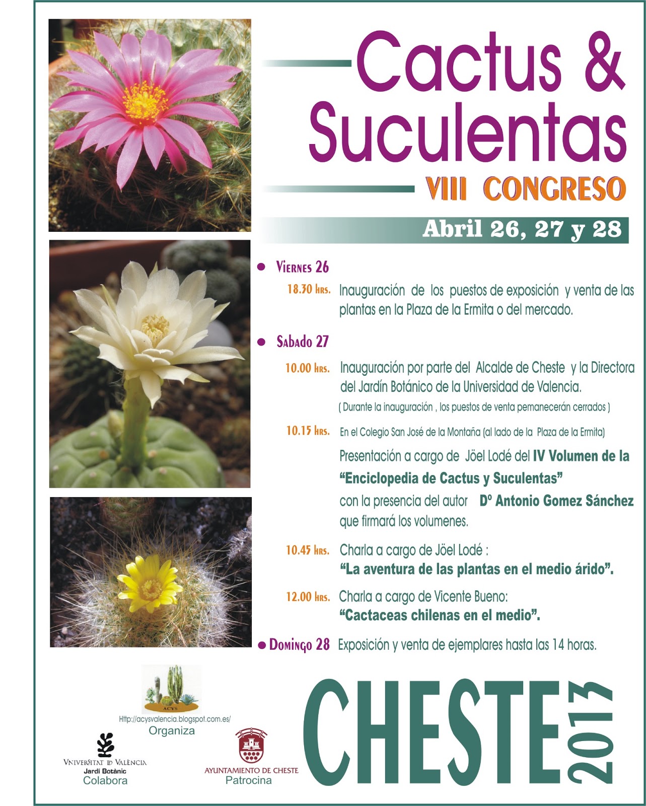 Desde Acys os invitamos al VIII Congreso de Cactus y Suculentas de Cheste los próximos dias 26, 27 y 28 de abril.