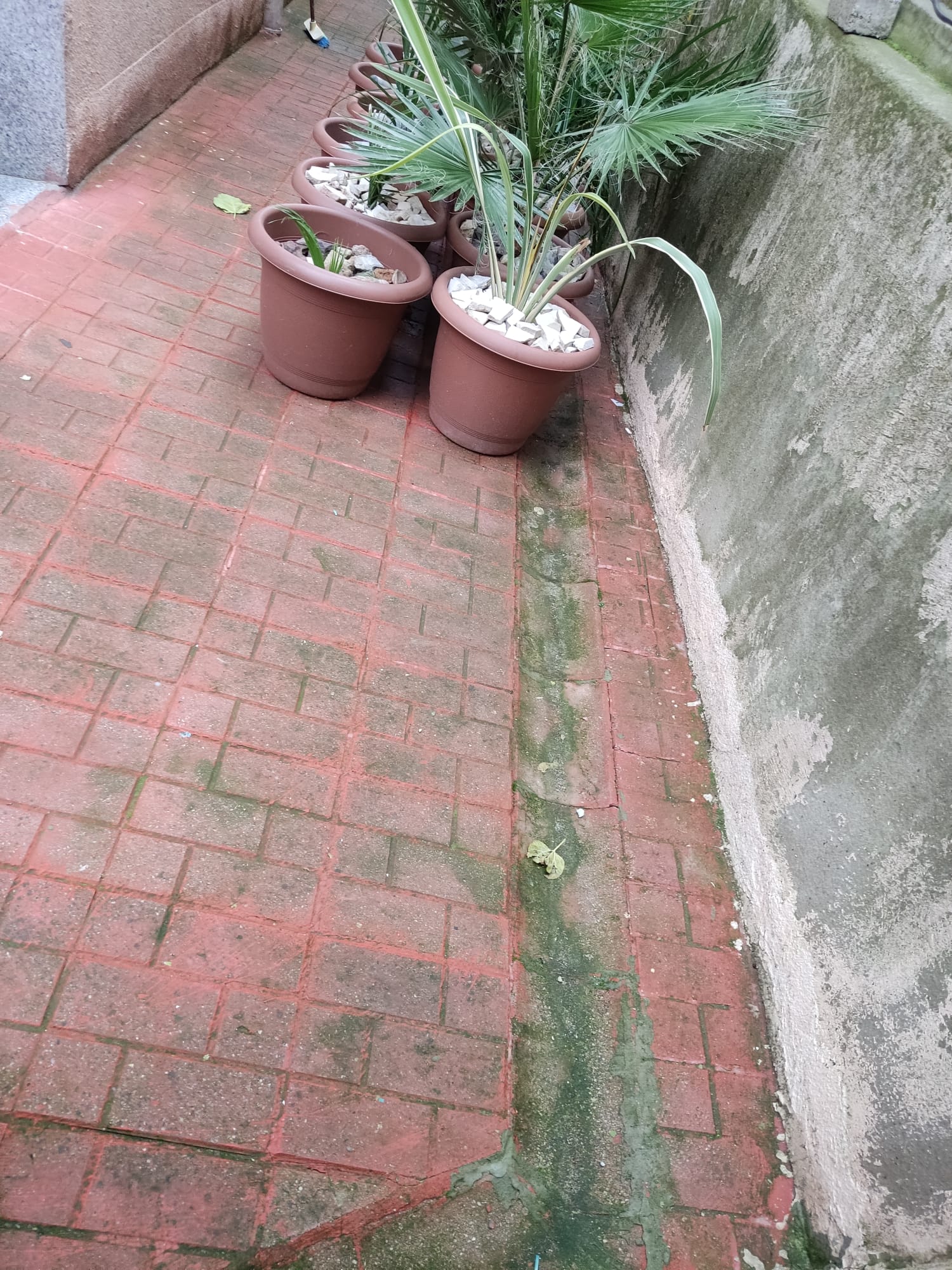 Visto así, mi cálculo de 16 o 17 puede estar mal, pero menos de 14 creo que es imposible. Es que no quiero medir ni que me vean planificando los vecinos de hecho sacar esas fotos me daba verguenza, como tenemos la tontería de la rampa y esas cosas, quiero ocupar ese lugar poco a poco con macetas de una a una en su momento. Ya ajustaré.