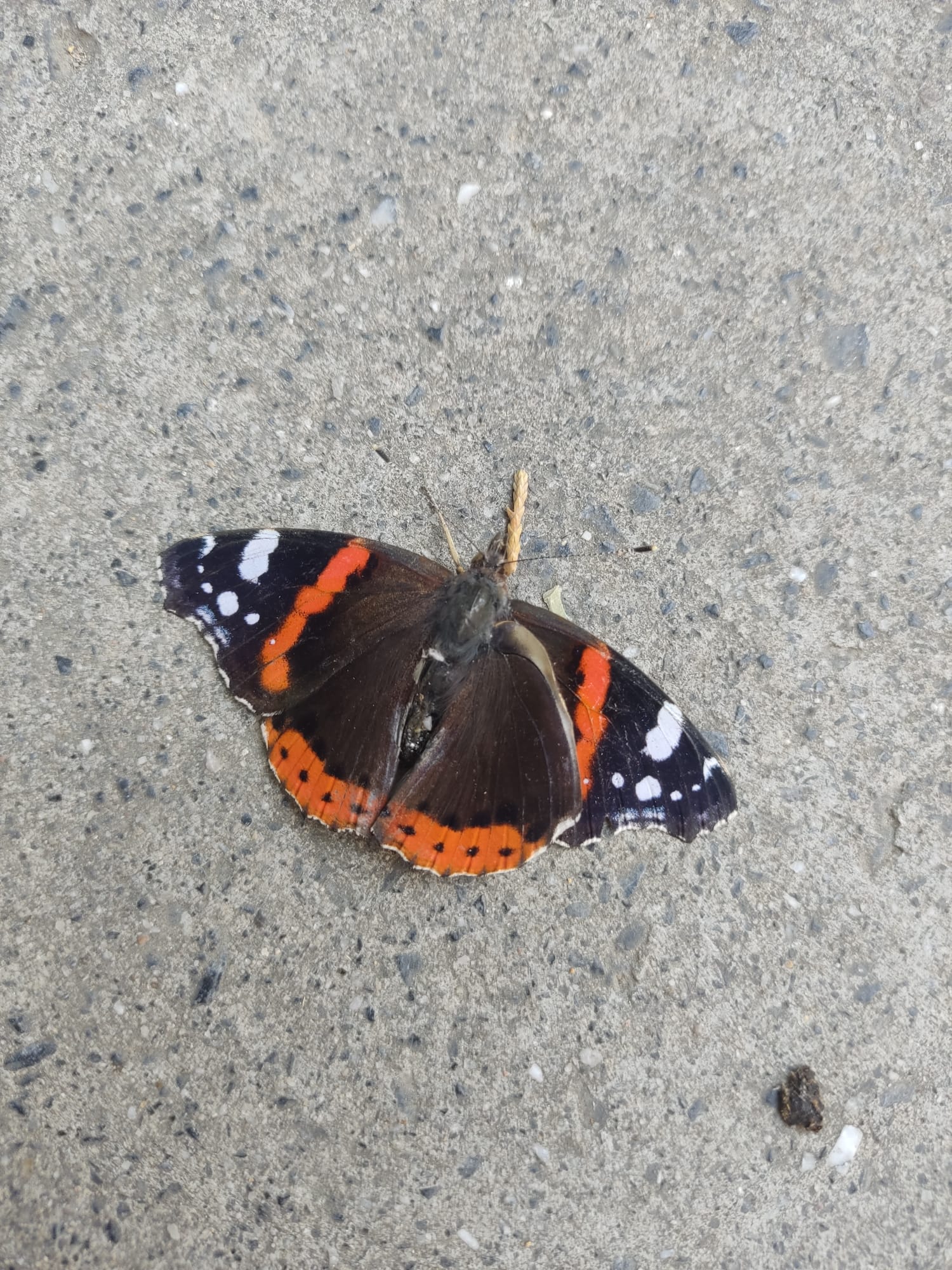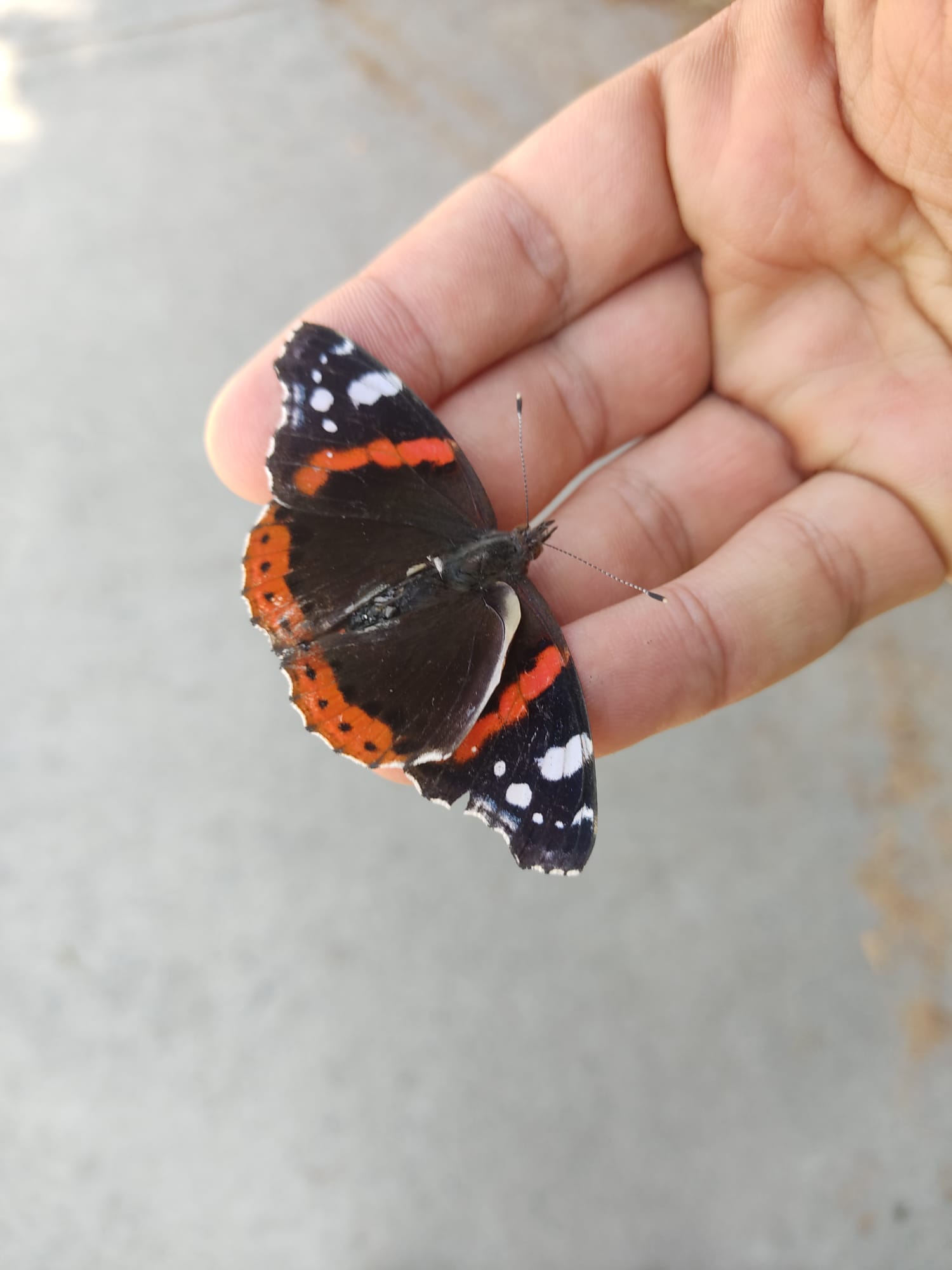Esta pobre mariposa me la encontré e intenté salvarla pero creo que no va a sobrevivir, le faltan algunas patas y no es capaz de volar.