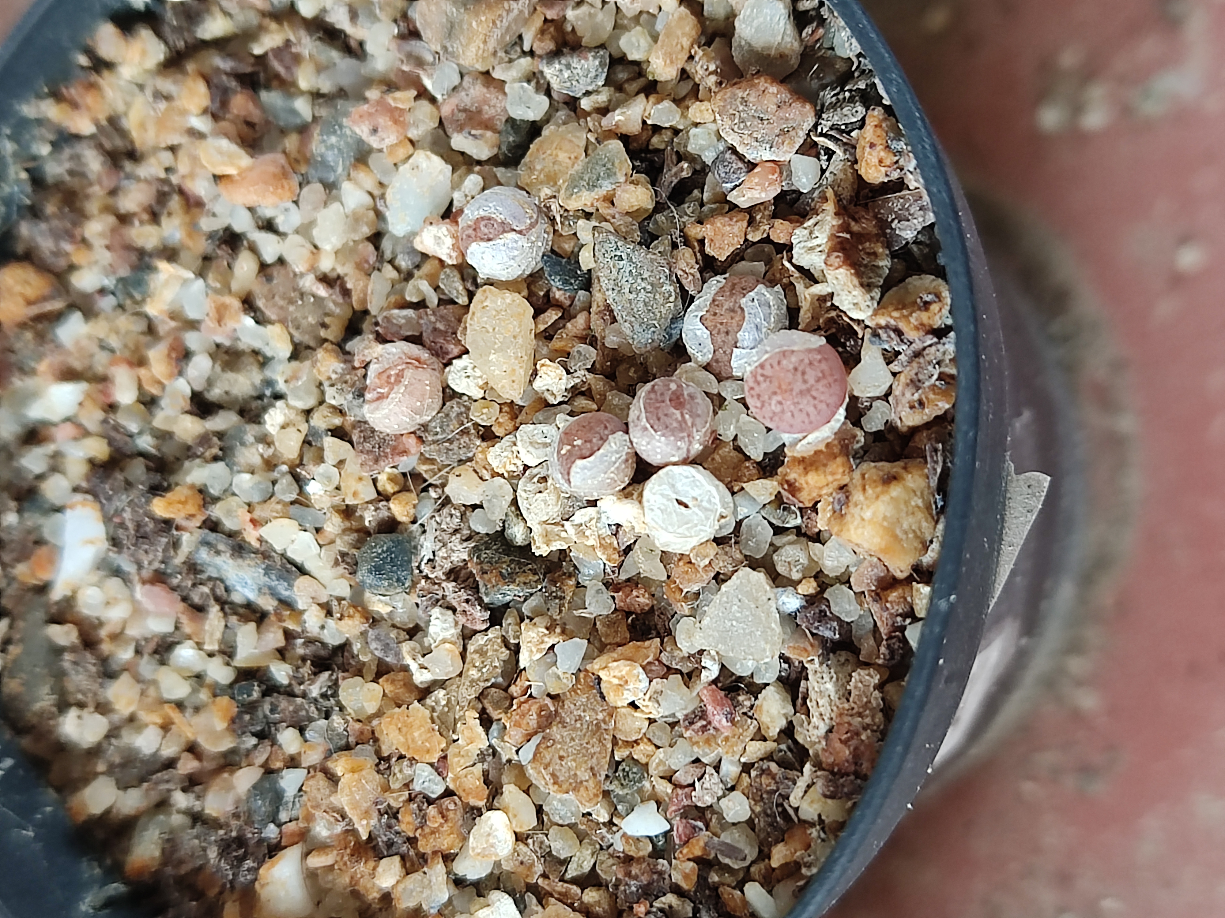 Te envío algunas recién hechas. Como ves hay un poco de todo. En algunas macetas hay escasamente un par de ejemplares y en otras hay bastantes. Y los tamaños varían considerablemente.