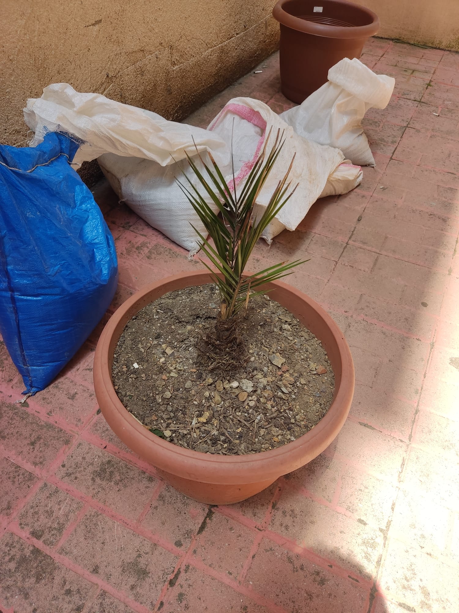 Ahora no encuentro pero me parecía que lo publiqué en algún lugar o quizás no, había una pobre palmera canaria que estaba casi muerta por un sitio donde trabajaba yo y me la dieron.