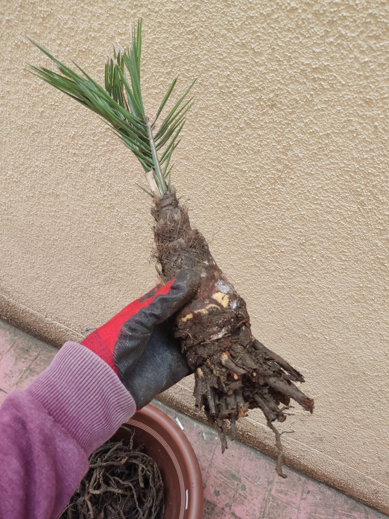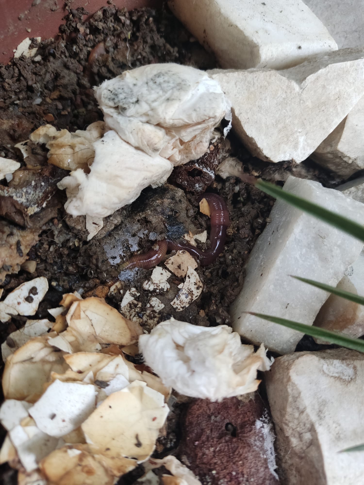 No he documentado muchísimo porque es la misma historia de siempre y voy con prisa, pero a poco que la saqué de ahí, la tierra estaba repleta de lombrices enormes, yo puse tres pero había muchas mas y grandes que tienen que haber llegado de otras macetas en los dias de lluvia, es lo que dijo GPT que no pueden acudir a donde haya comida pero si se la encuentran en sus excursiones ahi se quedan. Era brutal la cantidad de lombrices gordas que había de varias especies y muchas lombrices bebé. Y tenía lógica que habían acabado totalmente con casi cualquier hongo que quedara a cierta profundidad, Lo peor que vi es que la palmera tenía las raices todavía intactas, es decir las lombrices no habían comenzado a comérselas ya que las tenía todas muertas. Y había zonas de tierra apelmazada, la verdad no entendí muy bien pero era un desastre pero repleto de lombrices, al final no pude salvar ni una sola raiz, estaban todas muertas perolas corté y se las dejé.